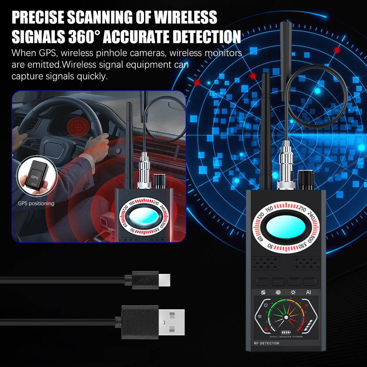 ✅【Multi-Function Hidden Camera Detector】Hidden device detector has powerful detection functions: 1. Hidden camera detector: can detect and identify various hidden cameras in your life; 2. Radio frequency detector: detect active radio frequency bugs Transmitters, such as transmitting cameras, GPS trackers, wireless audio errors; 3. Magnetic field detection: can detect the presence of the magnetic field generated by the GPS tracker. 4. Night Vision Camera Detection: Find hidden cameras with night vision capabilities