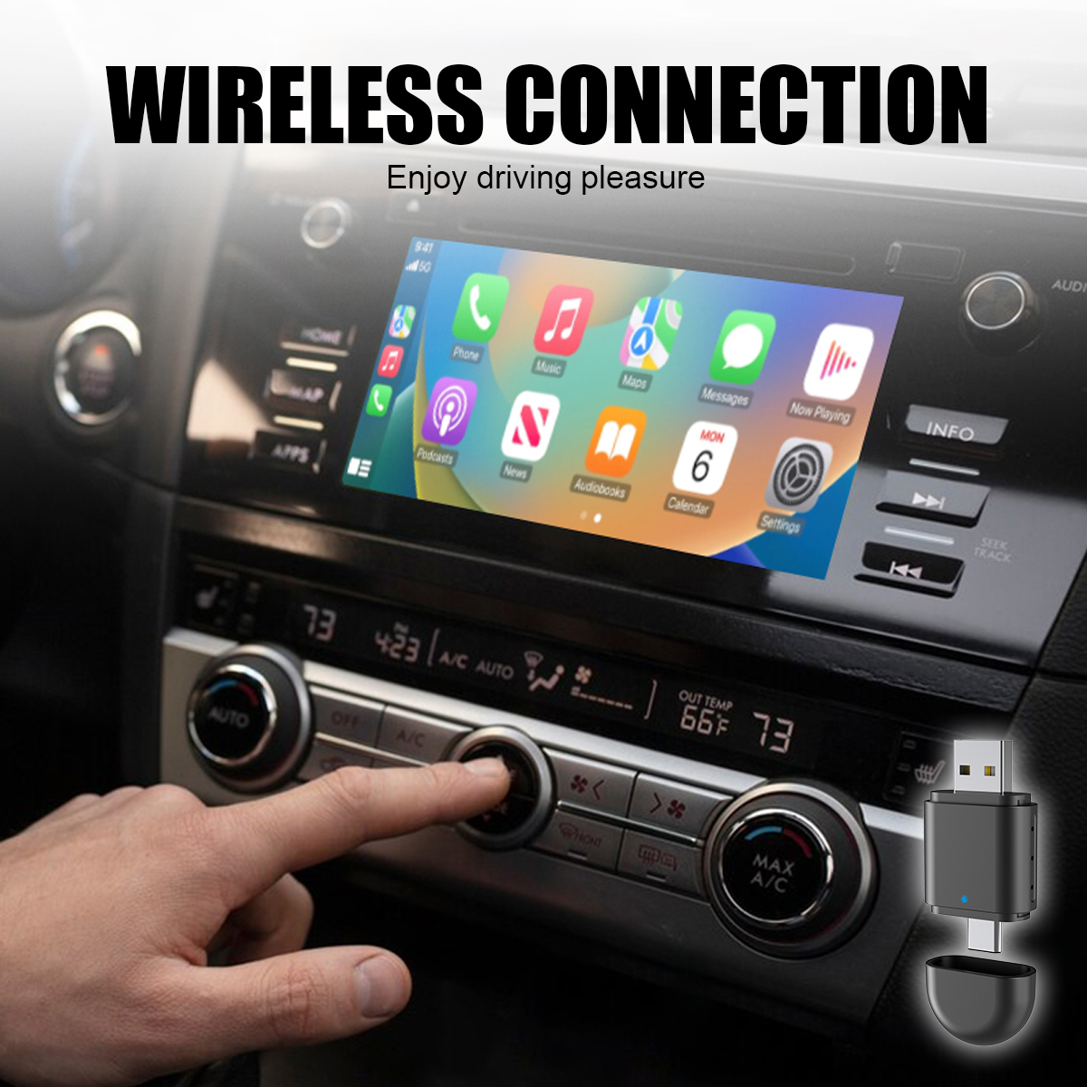 5. Superior Wireless Performance: Utilizing the latest Bluetooth-Compatible 5.0 technology, the wireless CarPlay Android Auto adapter provides a strong, stable signal transmission and low-energy operation. Experience uninterrupted connectivity and high-quality performance with this advanced smart adapter.