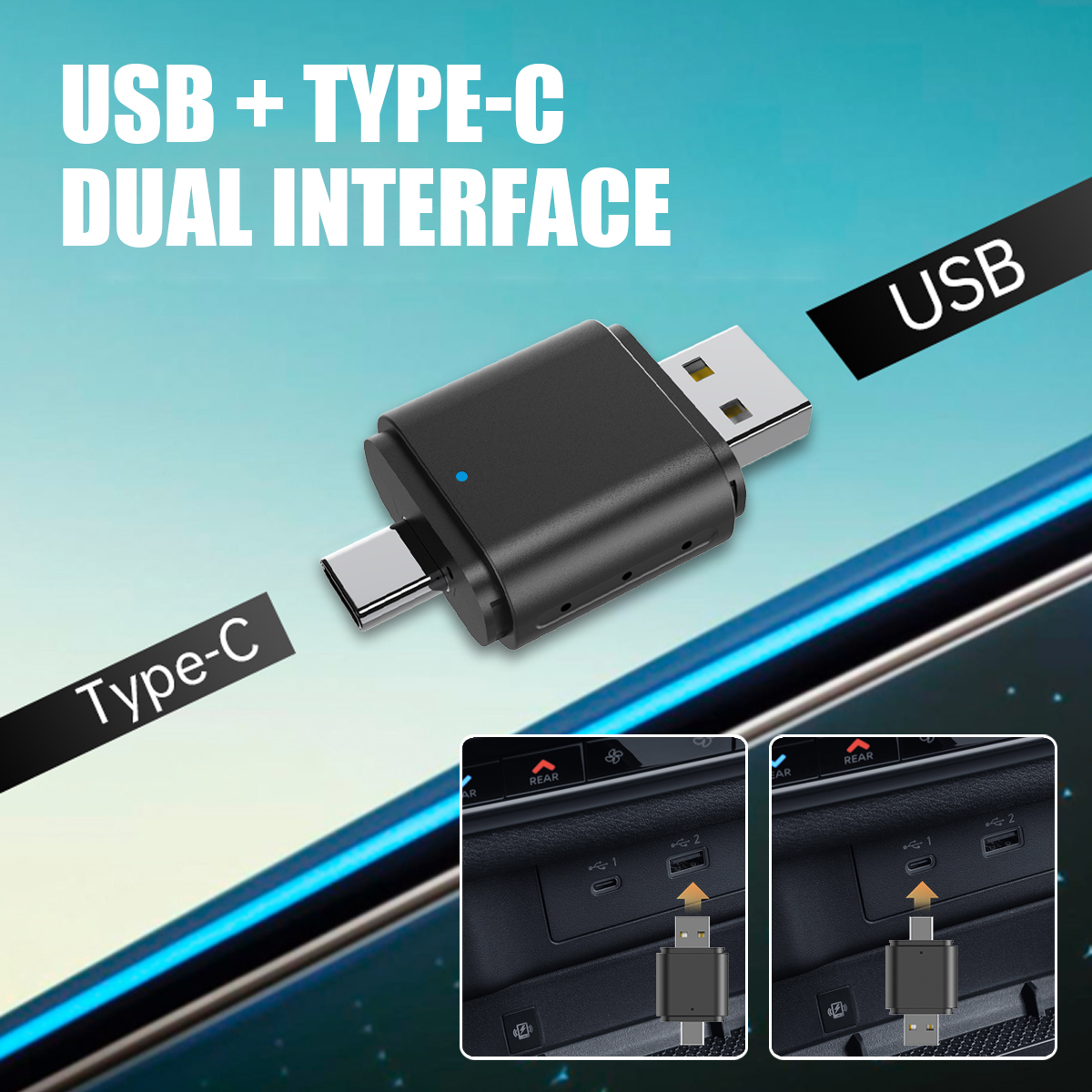 6. USB-A and USB-C port 2 in 1 design, compatiable with cars of two different type of ports.