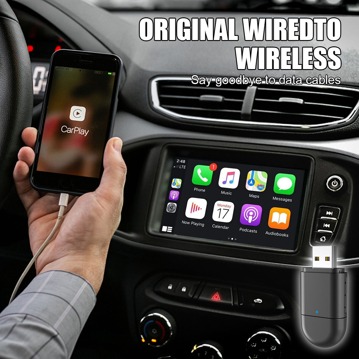 1. This wireless adapter only works with cars with ORIGINAL wired Carplya or Android Auto, will NOT work on ANY aftermarket car units.