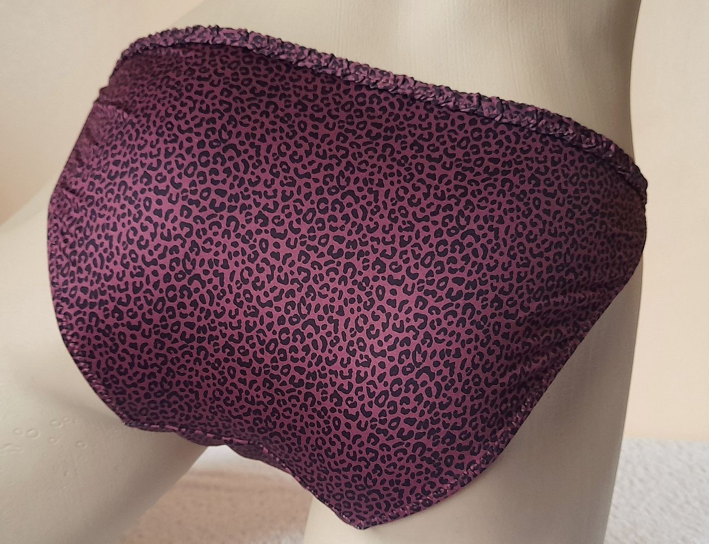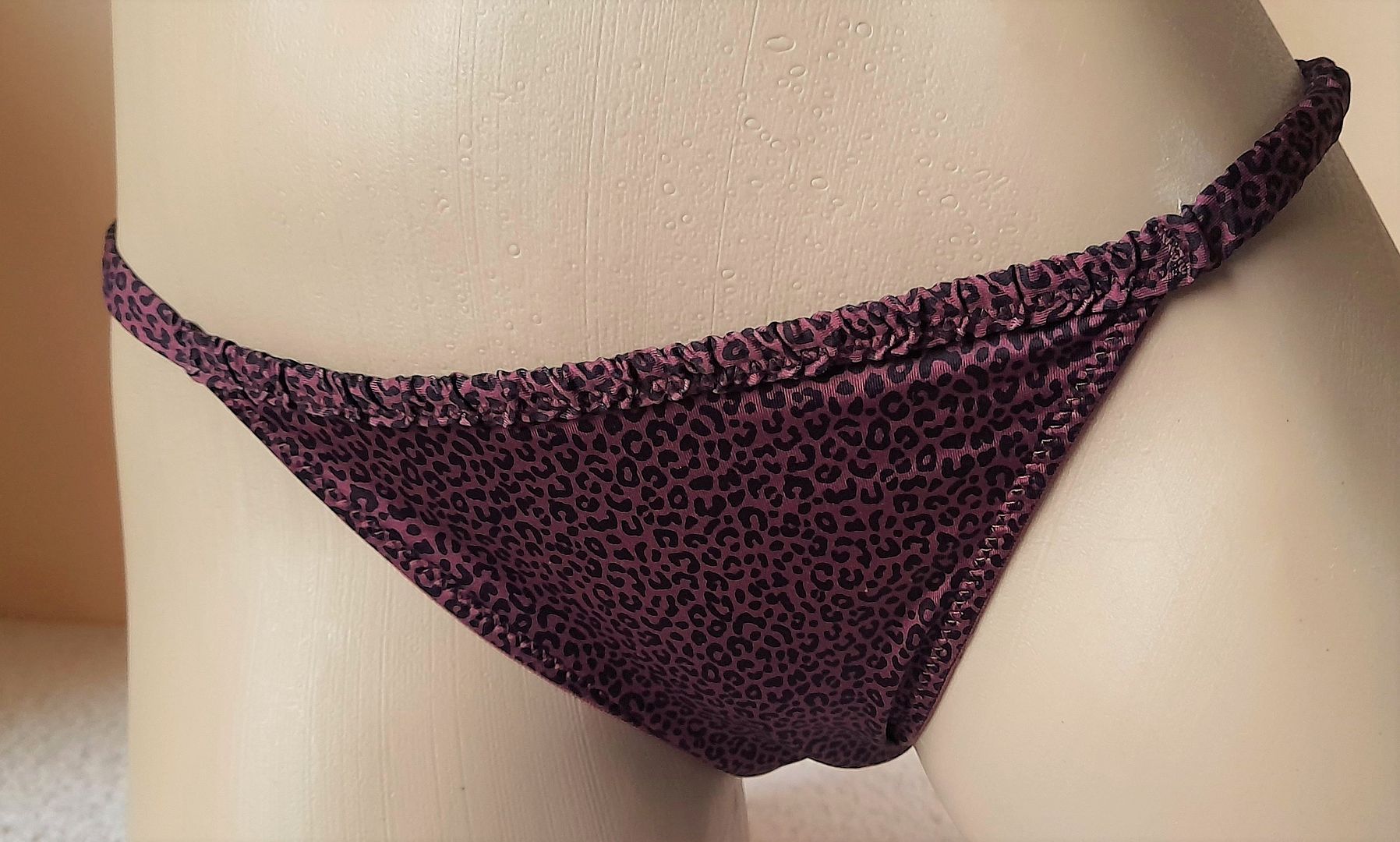 Pretty Dark Mauve Animal Soft Satin String Bikini Panties Tanga Knickers UK 12/14 - US 7-8