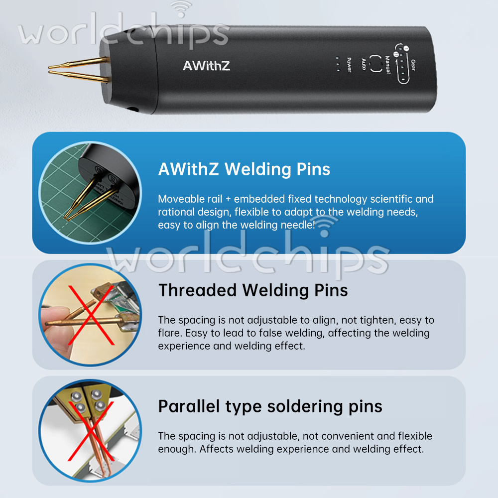 3.Easy to use: There are only 2 buttons and our spot welder buttons are labeled for ease of use. The battery spot welder does not need to leave the palm of our hand. Press and hold the power on/off button on the side with your middle finger for 2 seconds, press and hold the gear adjustment button on the top with your index finger once, then press and hold it for 2 seconds to adjust the auto or manual mode.
