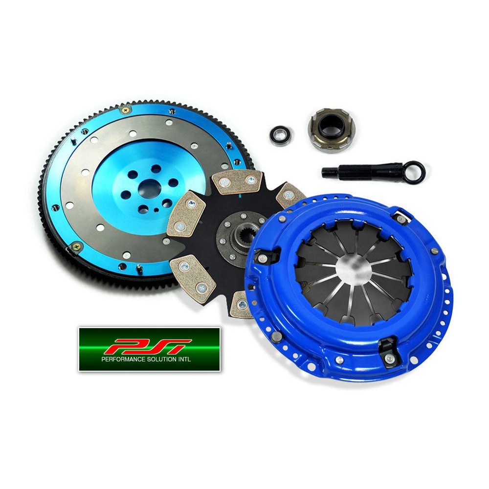 PSI Stage 4 clutches are designed for the individual whose goal is to have an ultimate strip/track clutch system. PSI Stage 4 clutches only consist of the very best materials available. The pressure plate is made from forged ductile iron (stronger than the conventional cast iron pressure plate) to ensure consistent clamping force and extra long life. Virtually indestructible 6-puck solid race discs have a high-capacity center hub for a precise and direct clutch engagement. The 6-puck copper ceramic (also known as 'MIBA') disc features high-coefficient friction pads that are resistant to slippage and burst. The PSI pressure plate features a special single diaphragm design to increase clamp load. It features an induction-hardened diaphragm, CNC machined castings, stronger drive straps and rivets. PSI pressure plates provide a smooth and precise feel with easy modulation. All PSI pressure plates are load tested on a special testing tool for quality assurance.