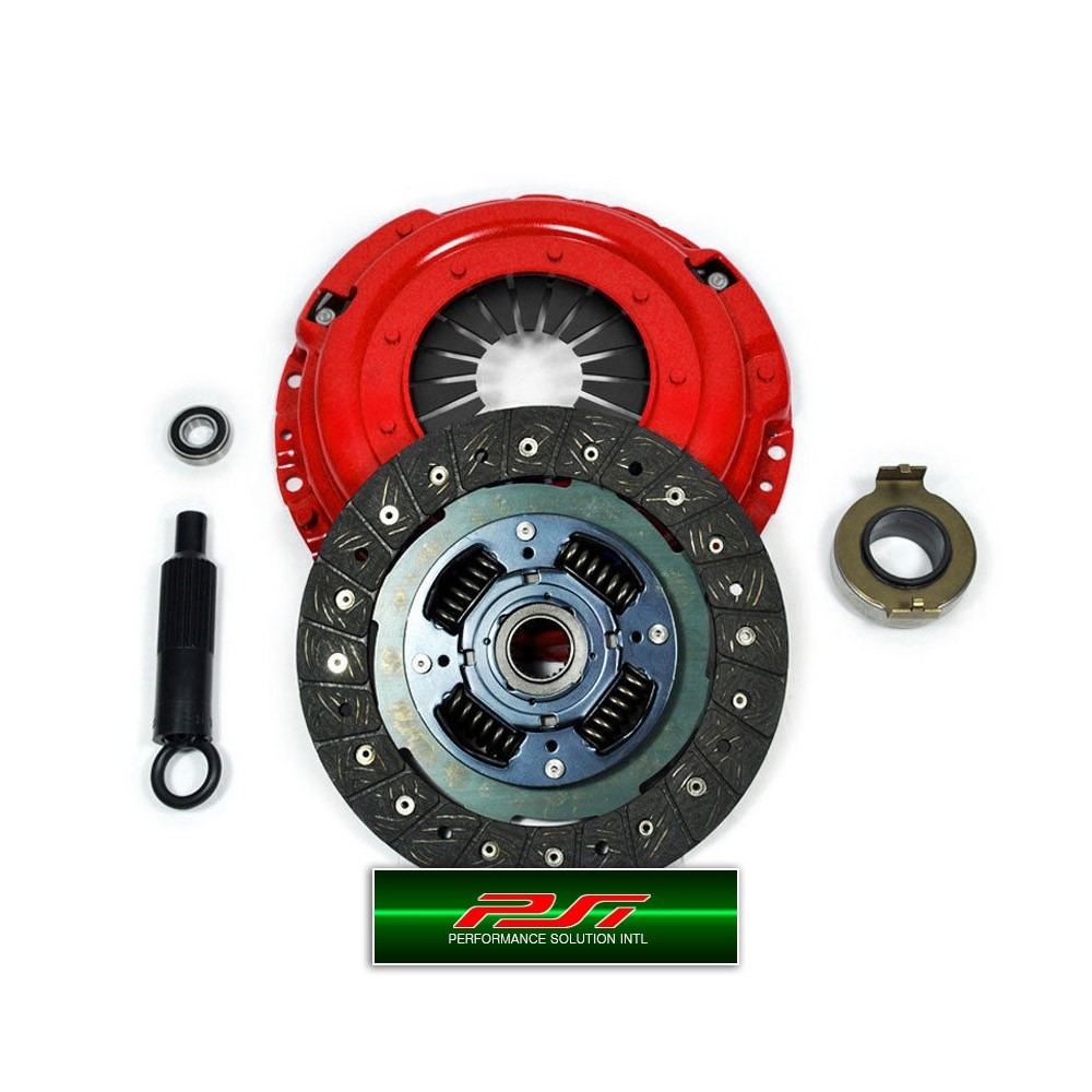 PSI Racing stage 1 clutch kit is an upgrade heavy-duty clutch set up for those who seeks streetable high performance clutch. It is a direct factory replacement parts thus no modifications are needed. The clutch kit includes only the highest grade components and it's ready for hot action on street and track. The premium organic friction material for high heat tolerance, quick recovery, good friction and long life. The heavy-duty sprung center unit boasts heat treated springs and retainer rivets for the maximum power and durability. The PSI Racing pressure plate features special single diaphragm design to increase clamp load. It features induction hardened diaphragm, CNC machined castings, stronger drive straps and rivets. PSI Racing pressure plate provides smooth and precise feel with easy modulation. All PSI Racing pressure plate is load tested on a special testing tool for quality assurance.