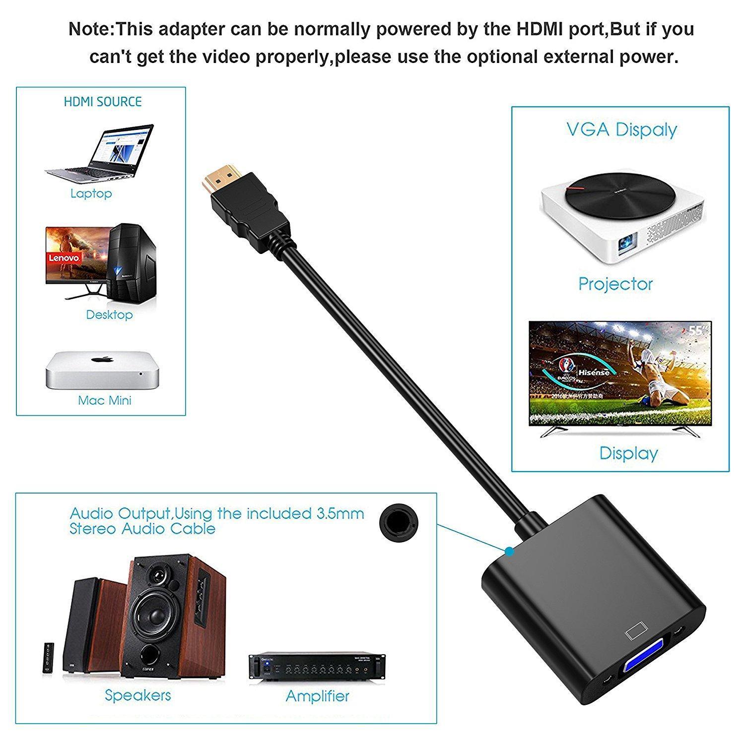 HDMI to VGA Converter Adapter Male to Female with Audio Cable for Xbox 360 for PS3 Laptop Desktop for HDTV Displayer