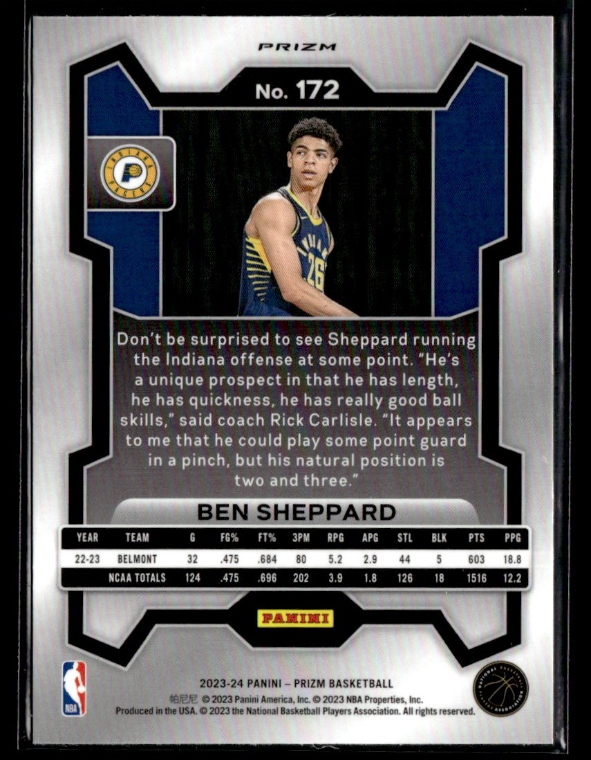 | 2023-24 PANINI PRIZM PRIZMS RWB BEN SHEPPARD RC INDIANA PACERS #172 |
