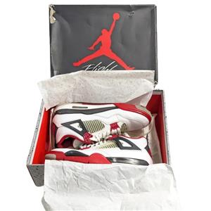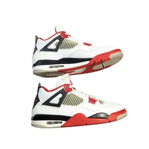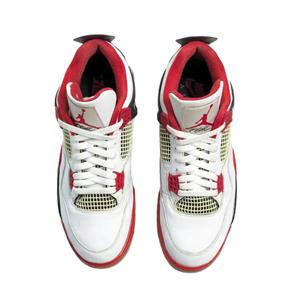 The Jordan 4 Retro Fire Red features an upper that is crafted from white leather accented with black and red. The 2020 edition of the Air Jordan 4 Retro OG ‘Fire Red’ brings back the classic colorway first released in 1989, complete with the iconic Nike Air logo emblazoned on the heel. Including white leather upper with Fire Red detailing on the molded eyelets and outsole. Other original details include a visible Air sole unit and tongue patch with a Jumpman logo and Flight script graphic.