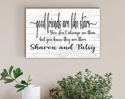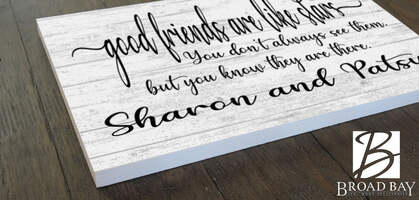 This unique farmhouse-style customized family sign makes a great gift. Perfect for bookshelf decor or any special occasion. Broad Bay only uses solid wood for the highest quality home decor signs. Custom created daily in Virginia Beach, our signs feature our unique Fresco Print process that actually embeds your design into the surface of the solid wood sign for a long lasting and vibrant appearance. Personalized fast, our customized signs make the perfect gift for a man, woman, family or couple!