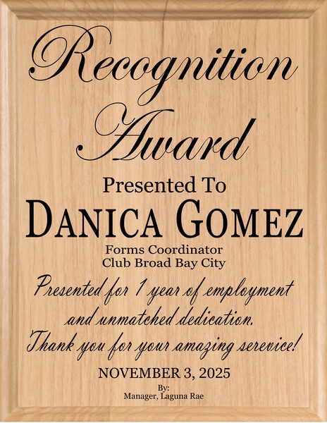 Create a personalized award that stands out and inspires. Design your recognition plaque today.