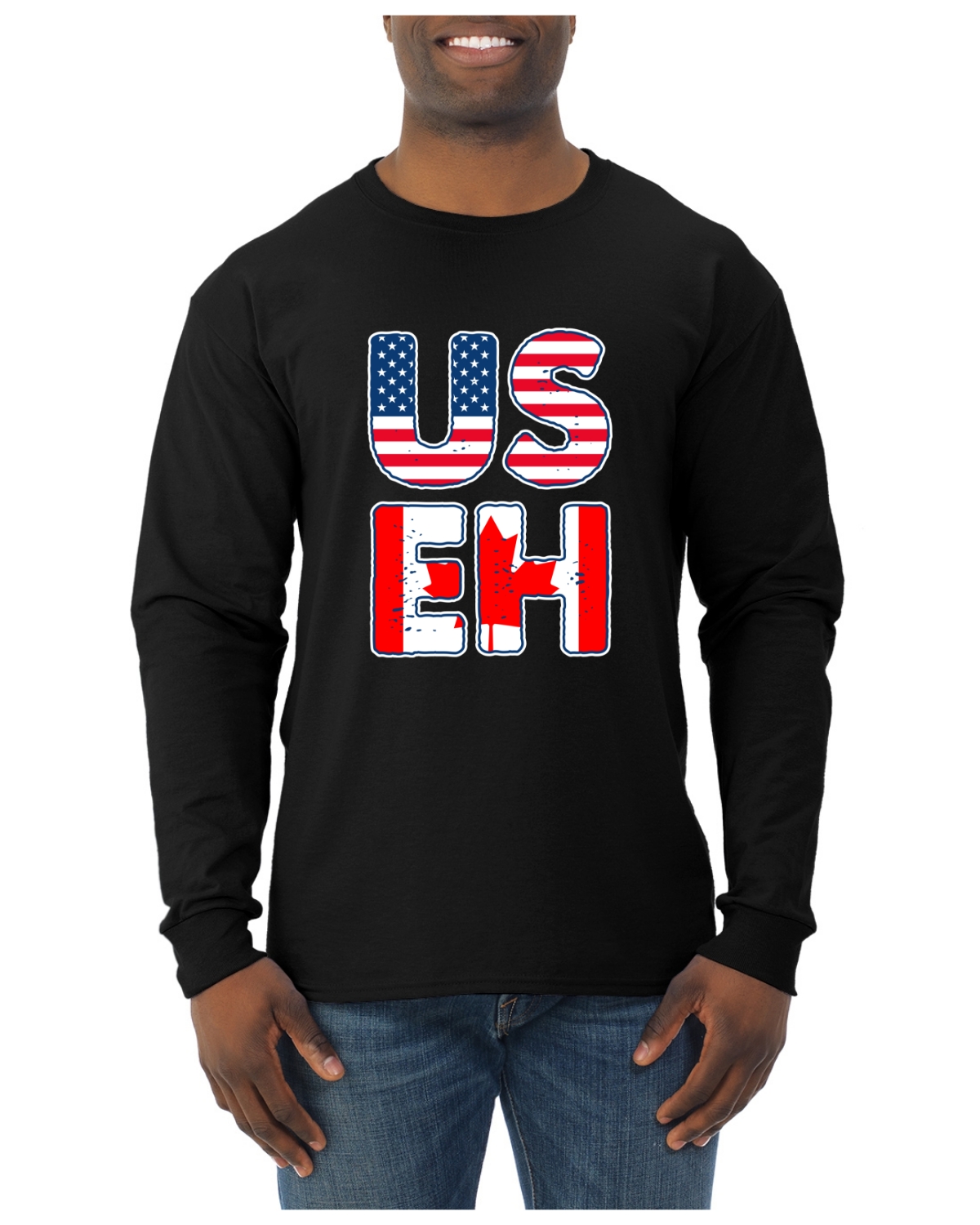 US Eh Funny USA United States Canada Flag 51st State Mens Long Sleeve Shirt