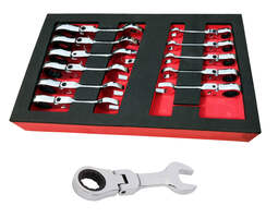 Laser-marked with the Britool Hallmark logo and part number for easy identification, the set includes sizes: 8, 9, 10, 11, 12, 13, 14, 15, 16, 17, 18, and 19mm. Supplied in a Tool Control EVA foam tray, it keeps your tools organized, easily accessible, and securely stored in a toolbox or drawer. Ideal for both professional and DIY applications, this ratchet spanner set ensures reliability and ease of use in any wrenching task.