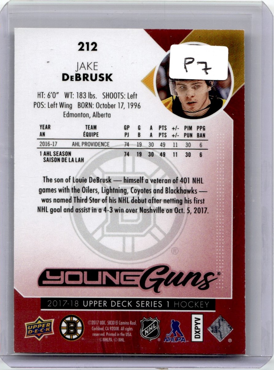 | 2017-18 Upper Deck Young Guns Exclusives Rookie Jake DeBrusk RC /100 Vancouver |