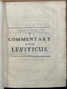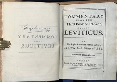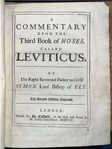‘A commentary upon the third book of Moses: called Leviticus. By the Right Reverend Father in God Symon Lord Bishop of Ely. The second edition, corrected’
