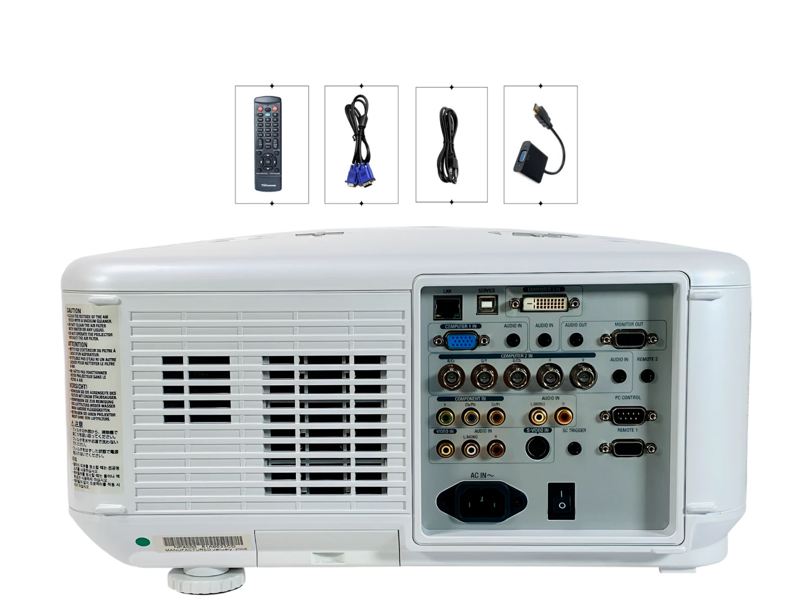 Projector exactly as described and clean. Works great, very well packed, highly recommend Seller. Thanks for the VGA cable, works great with my computer.