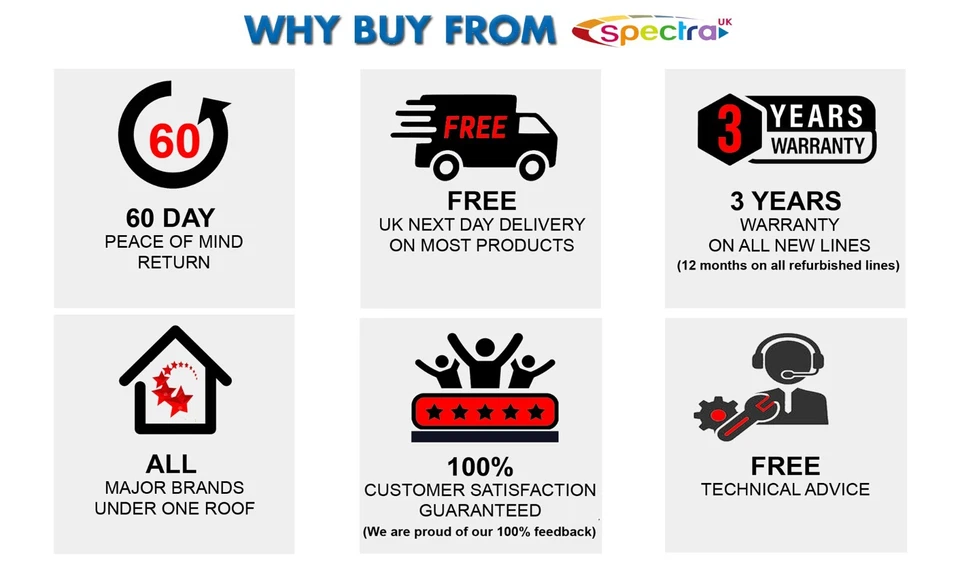 | About Us | Spectra UK is a Manchester based UK company with UK stock. We take great care with every single order to ensure that they are delivered on time. All of our products are original unless otherwise stated and carry free extended warranty. We offer a 60 days no questions asked money back guarantee (all products should be returned in their original condition). 100% customer satisfaction guaranteed. |