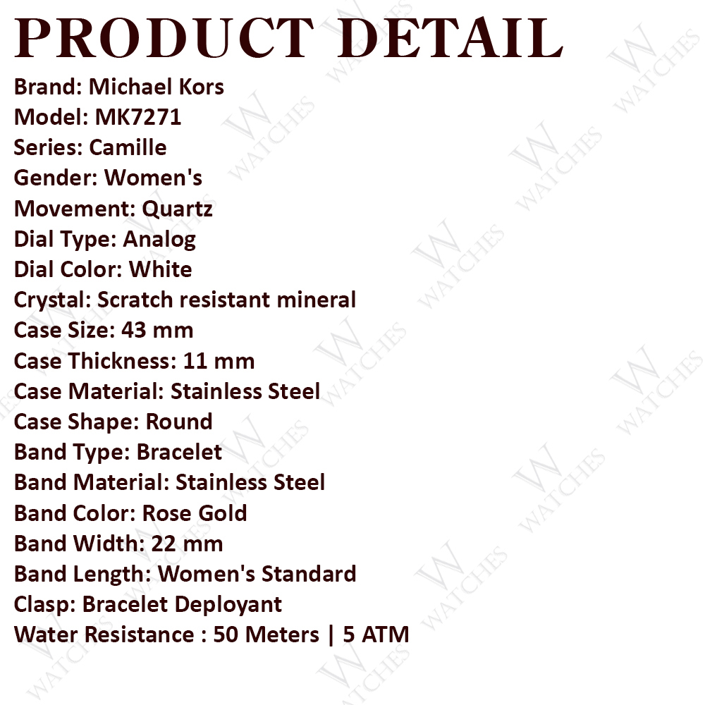 Michael Kors MK7271 Camille Rose Gold Tone Bracelet Chronograph Women's Watch