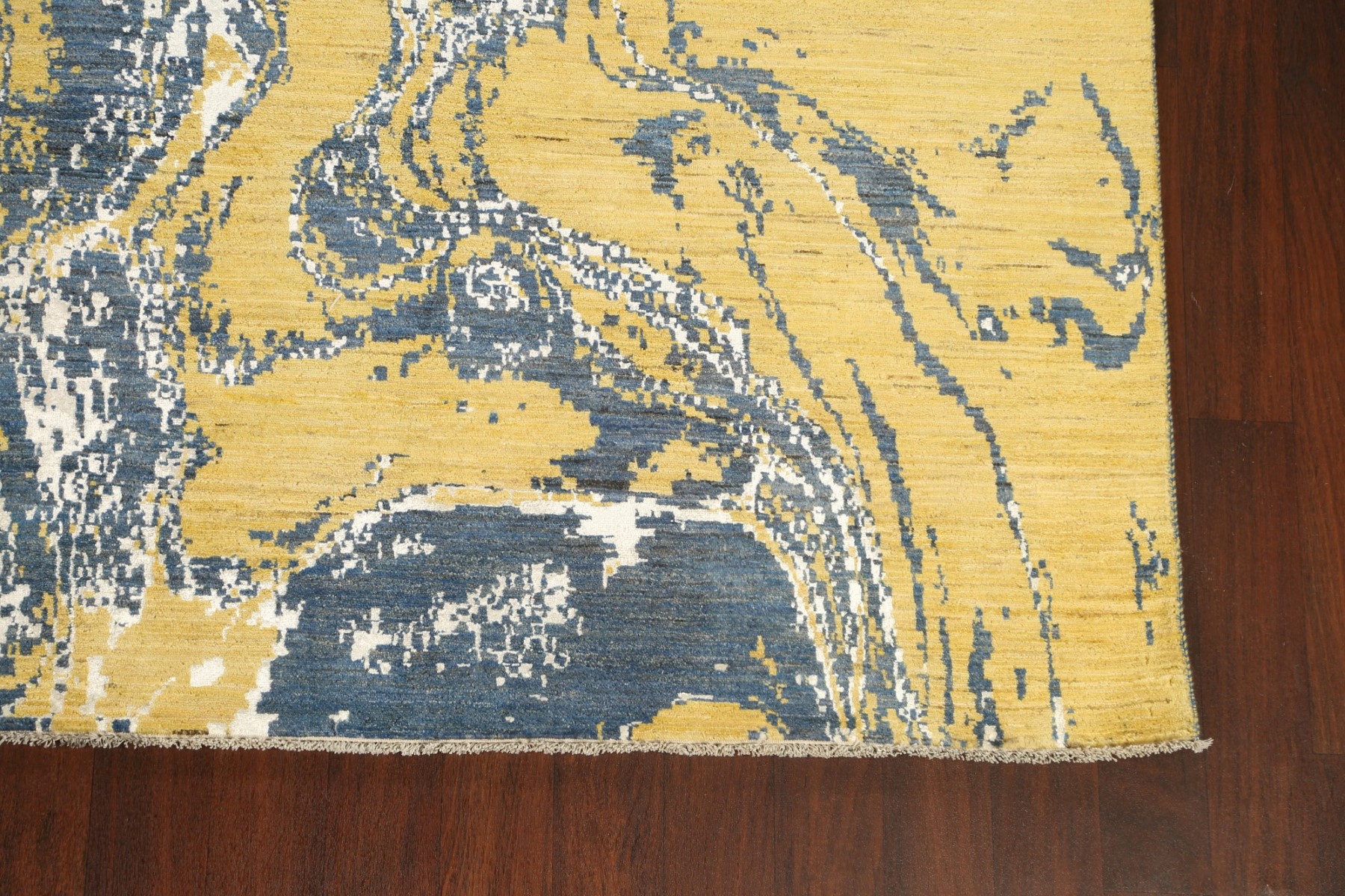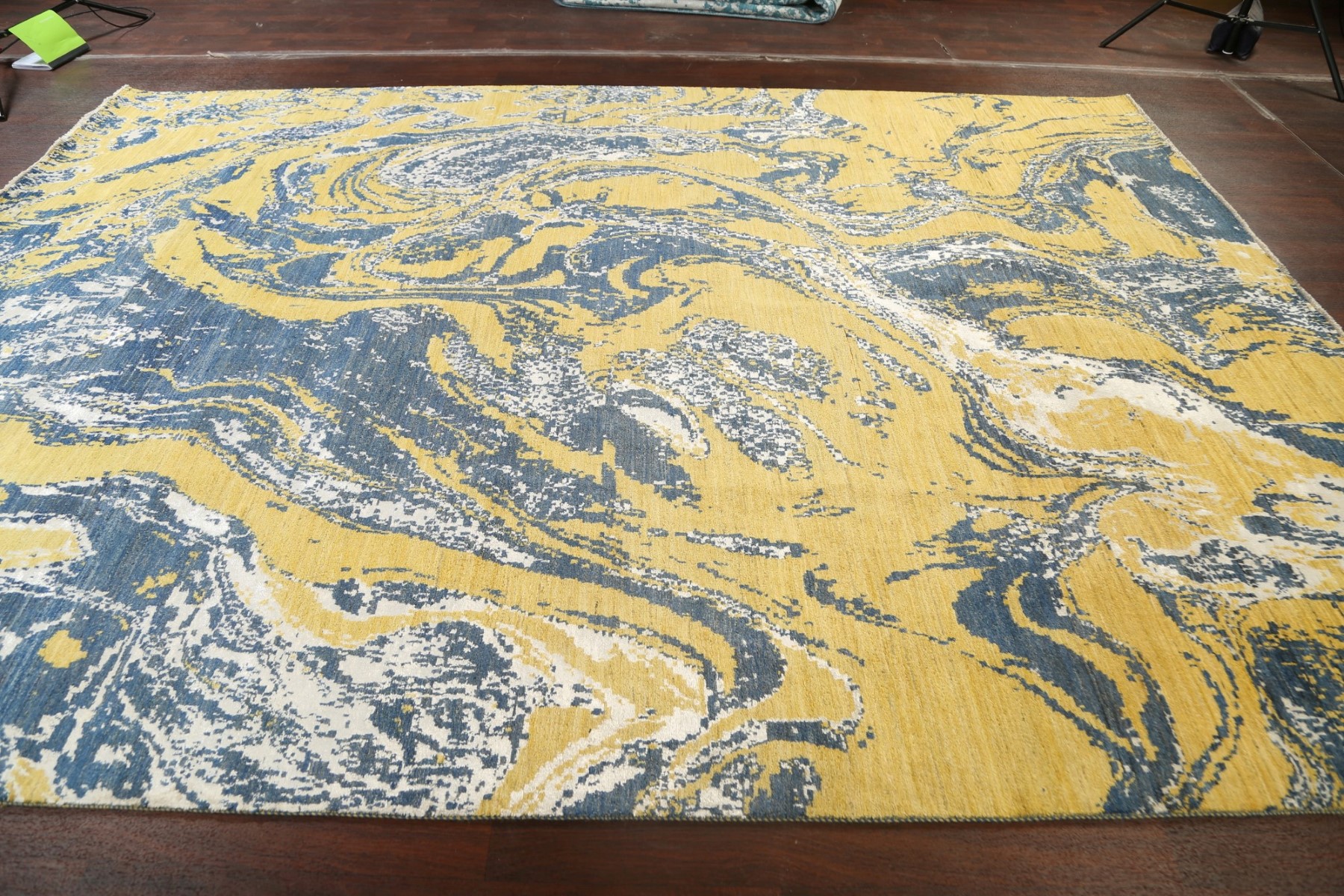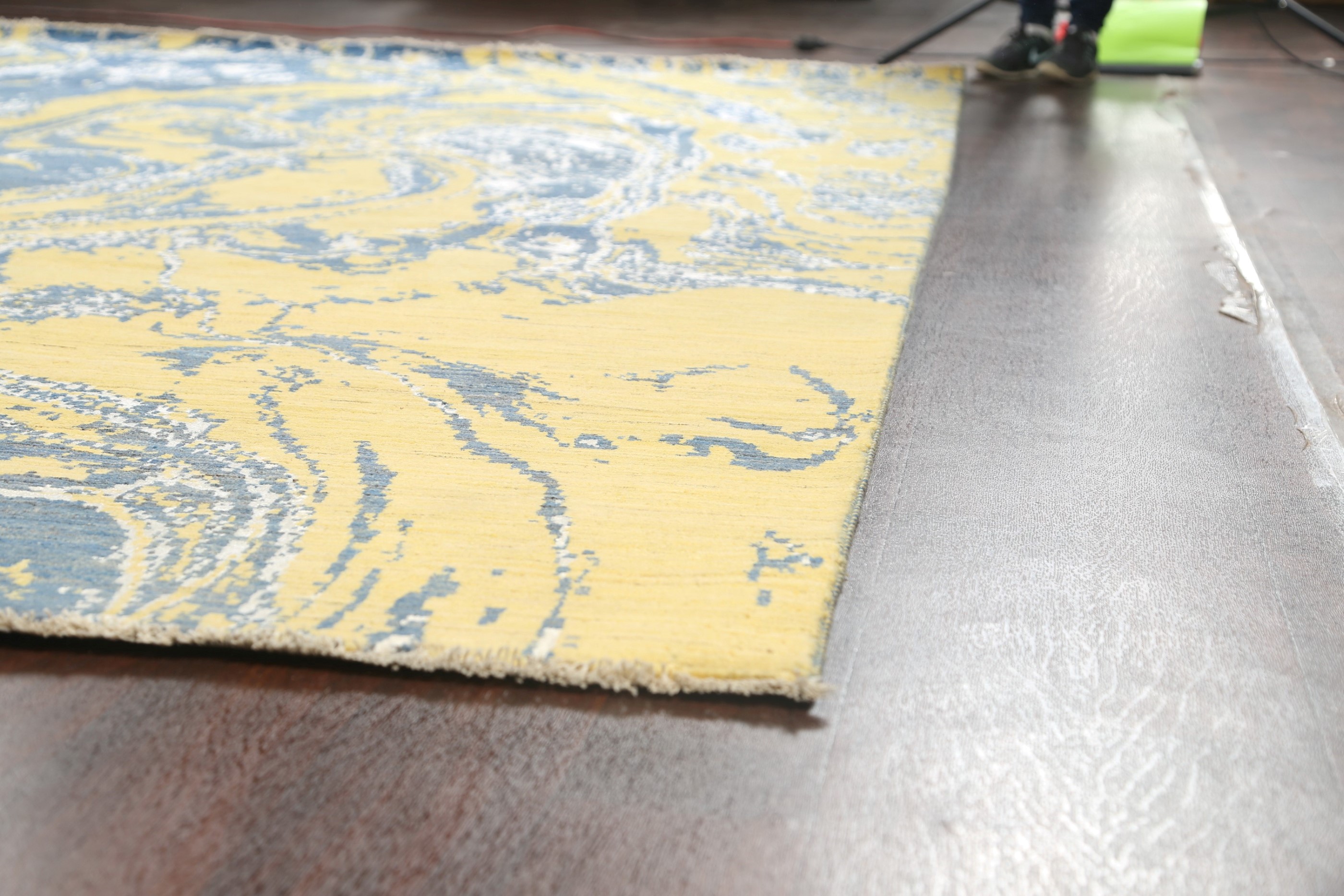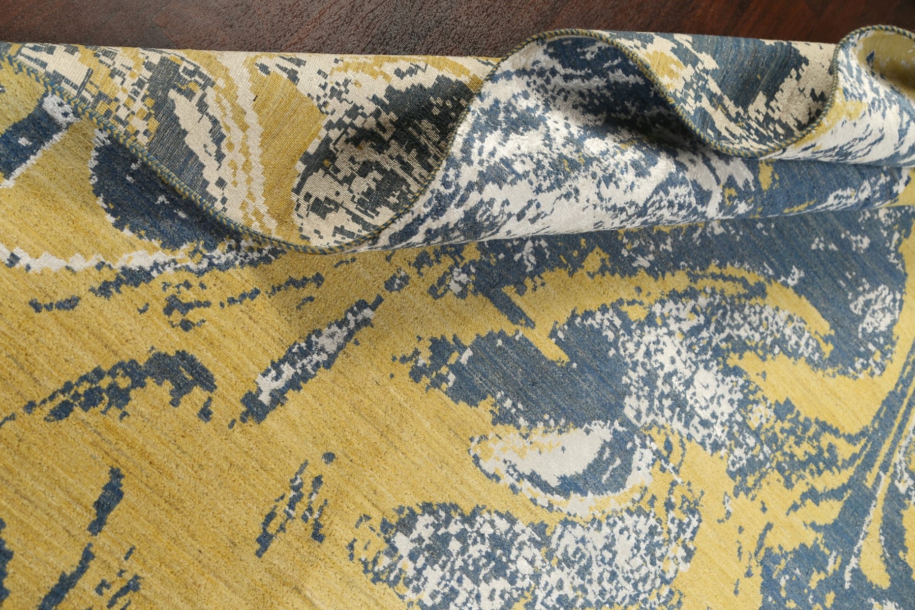 Vegetable Dye Contemporary Area Rug 9x12 Ft Hand-Knotted Yellow Wool & Silk Rug