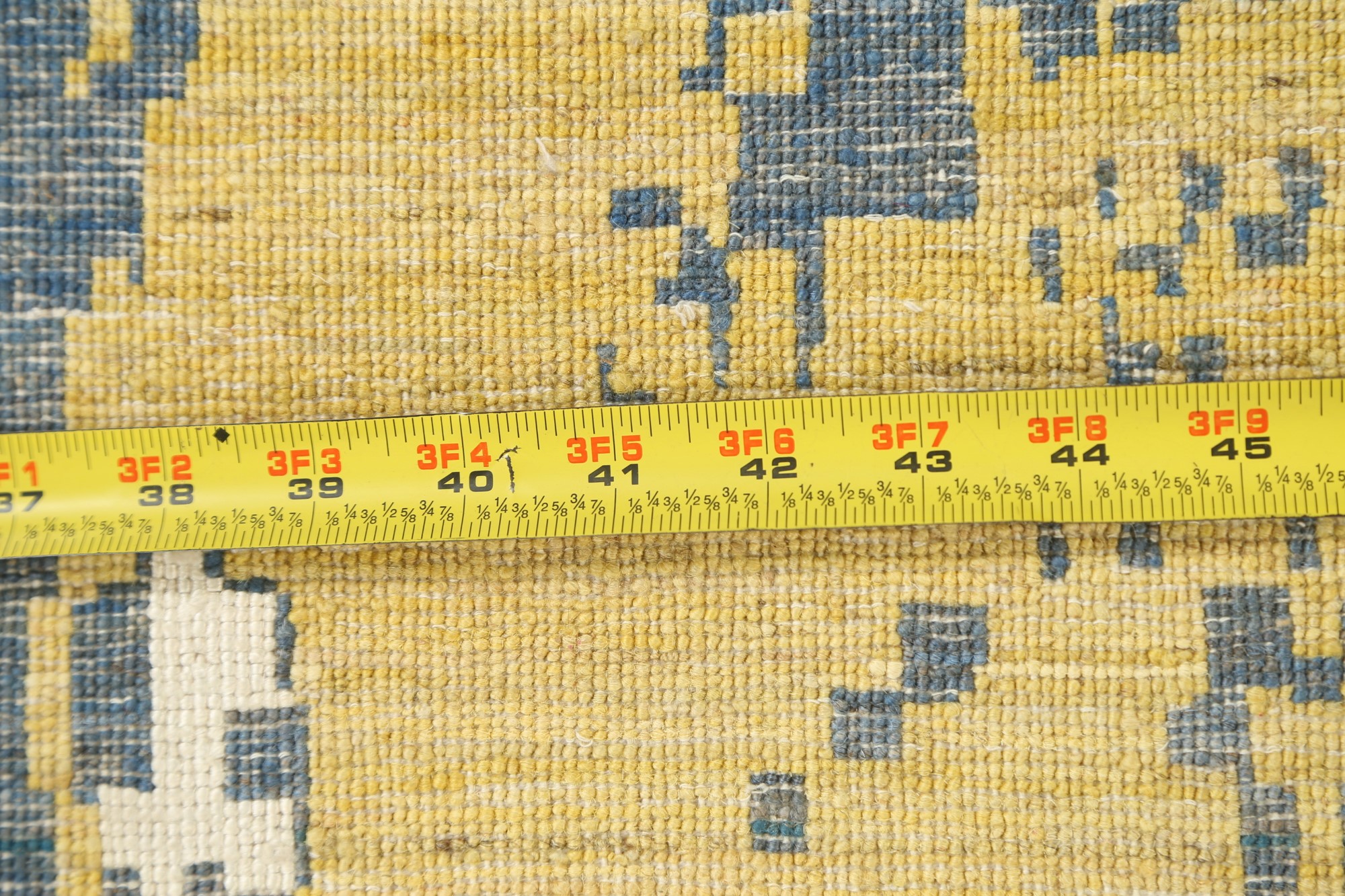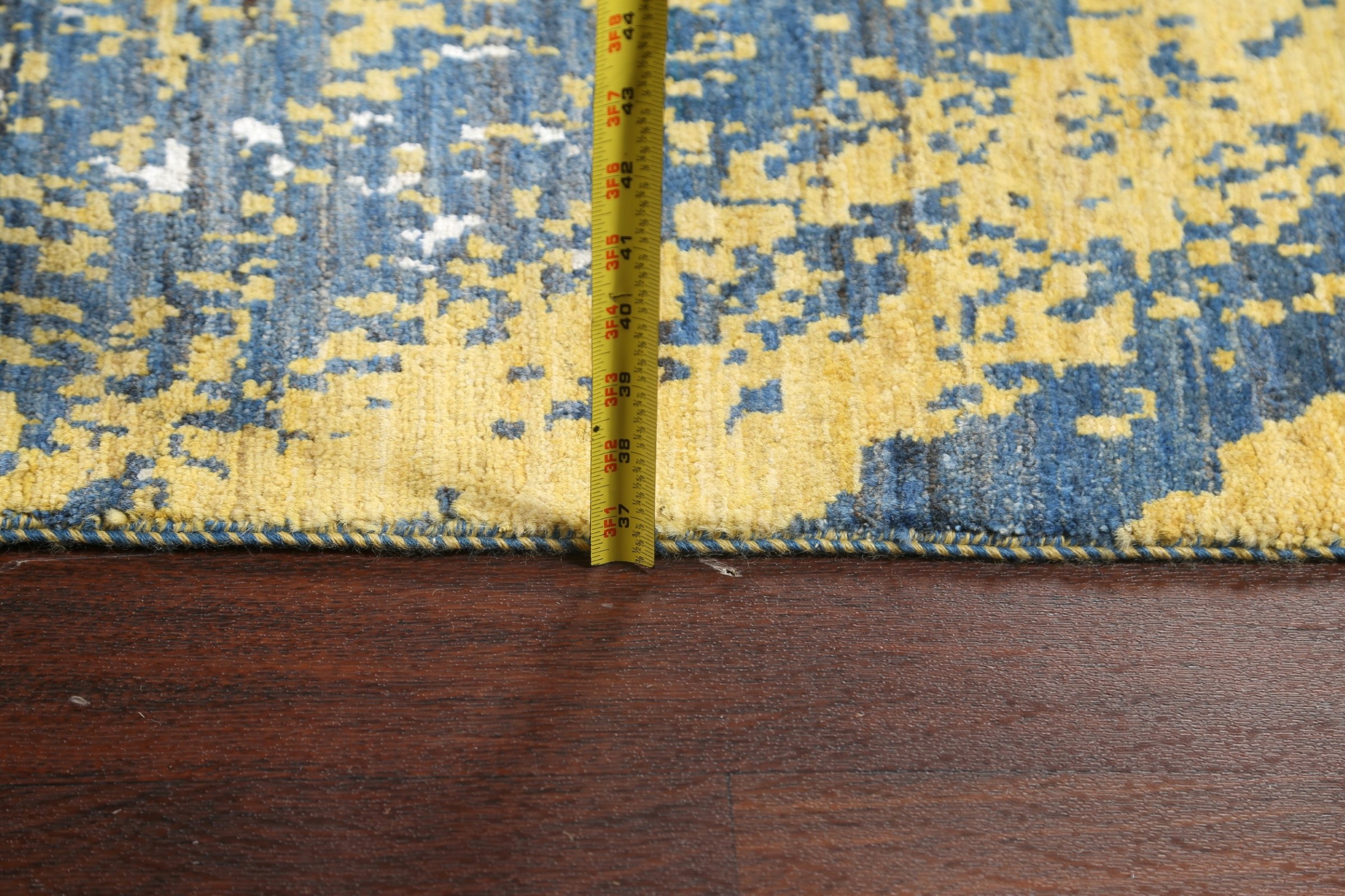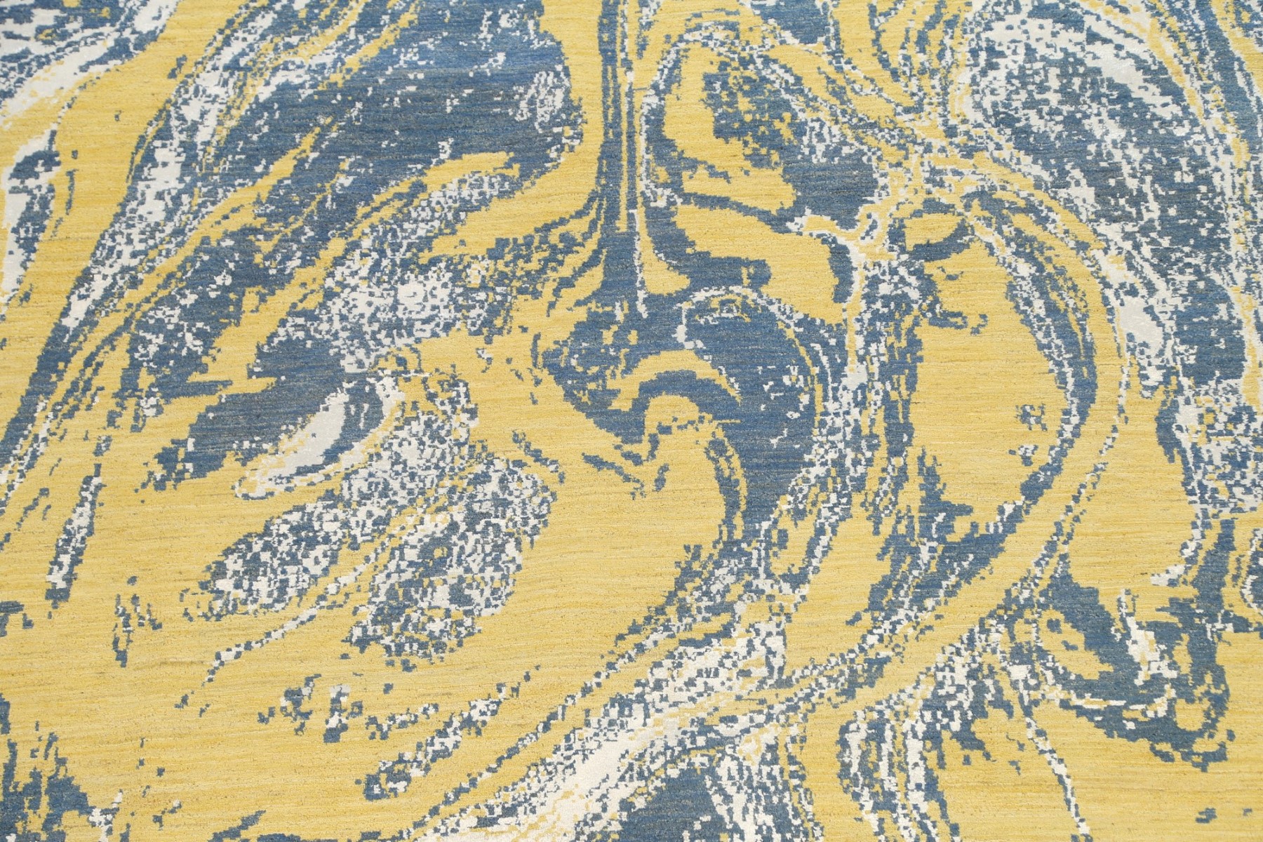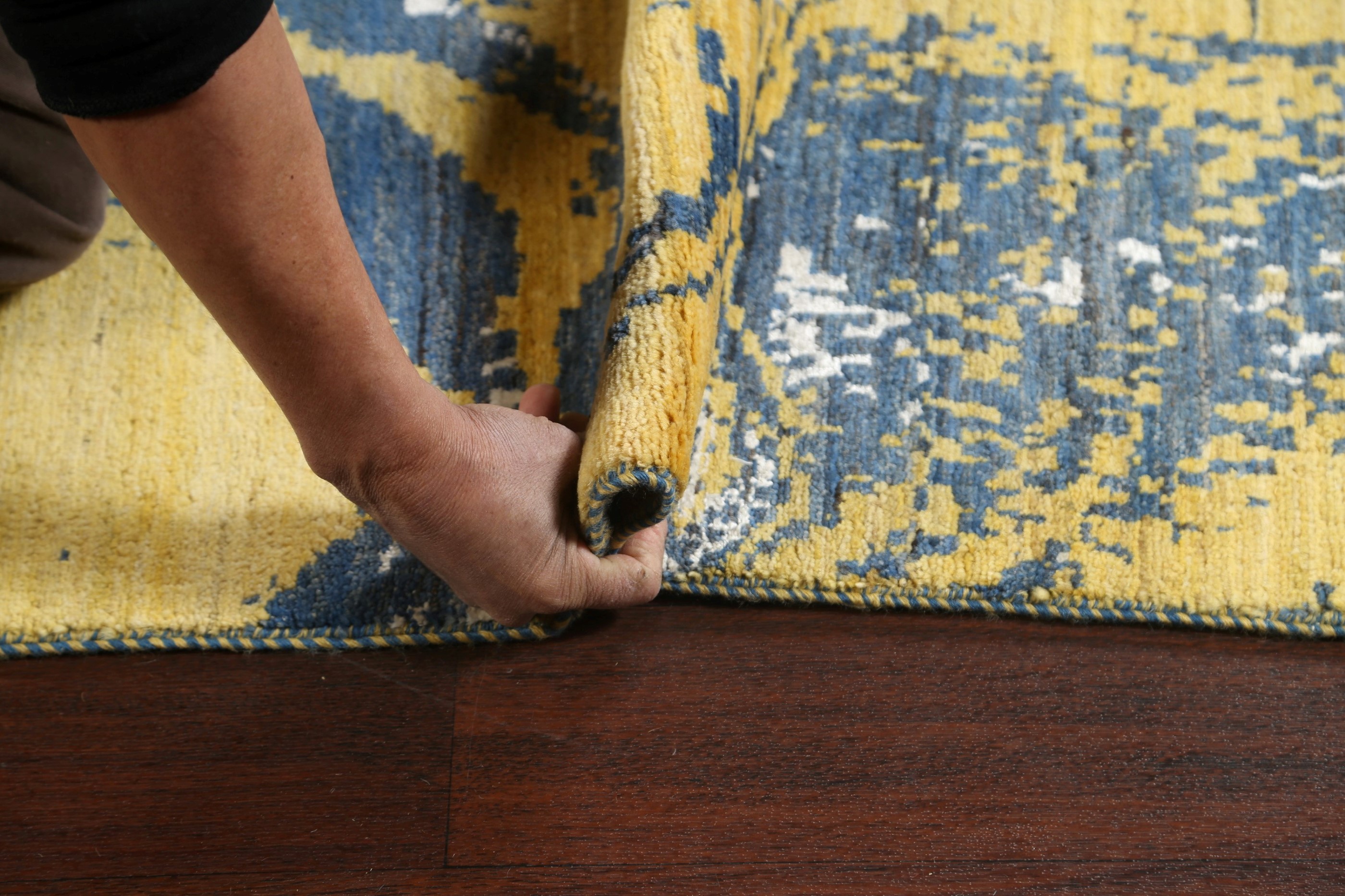 Vegetable Dye Contemporary Area Rug 9x12 Ft Hand-Knotted Yellow Wool & Silk Rug