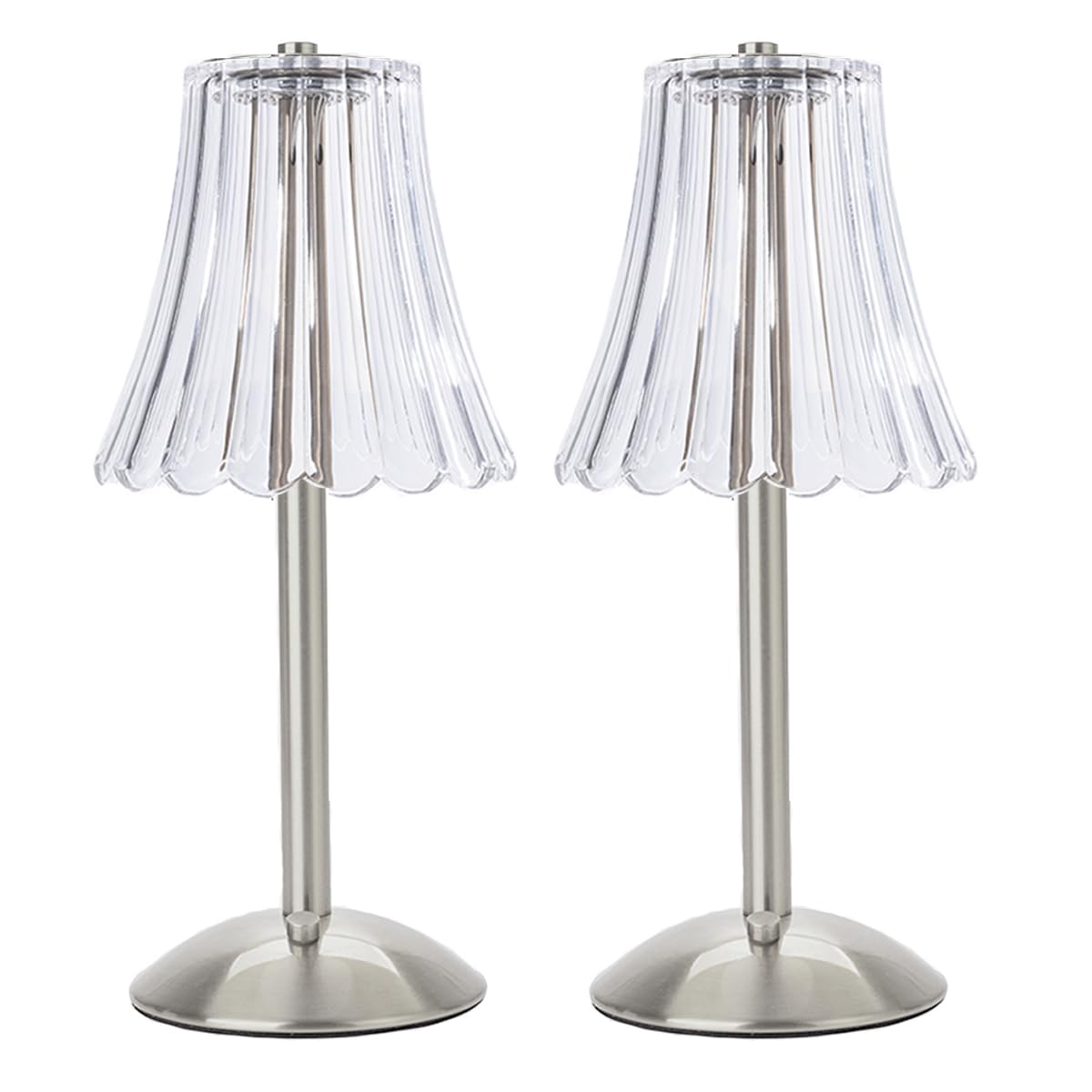 Cordless Table Lamps for Home,Table,Dining Room, Gold Rechargeable Lamps, USB Charge 12'' Tall LED Brass Portable Outdoor Indoor Table Lamp with Built-in Dimmer (Silver-Pack 2)