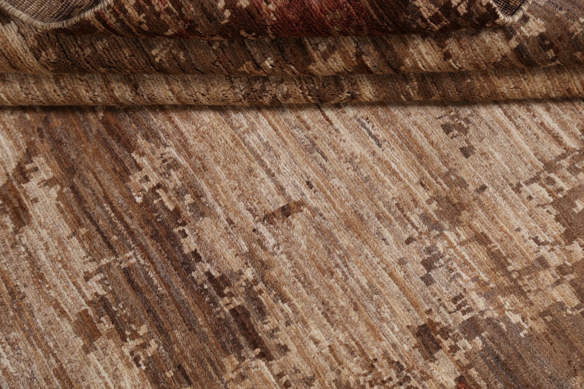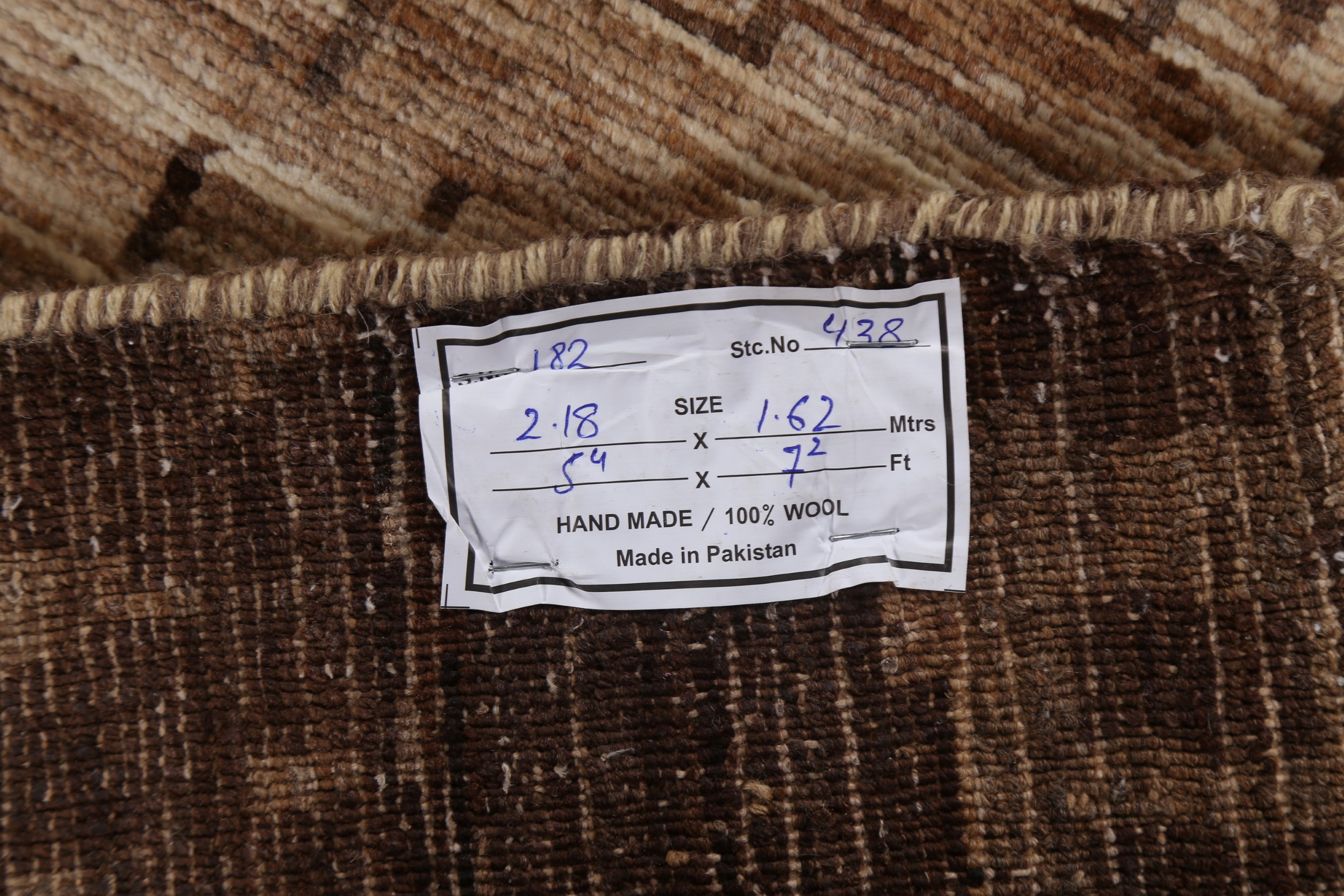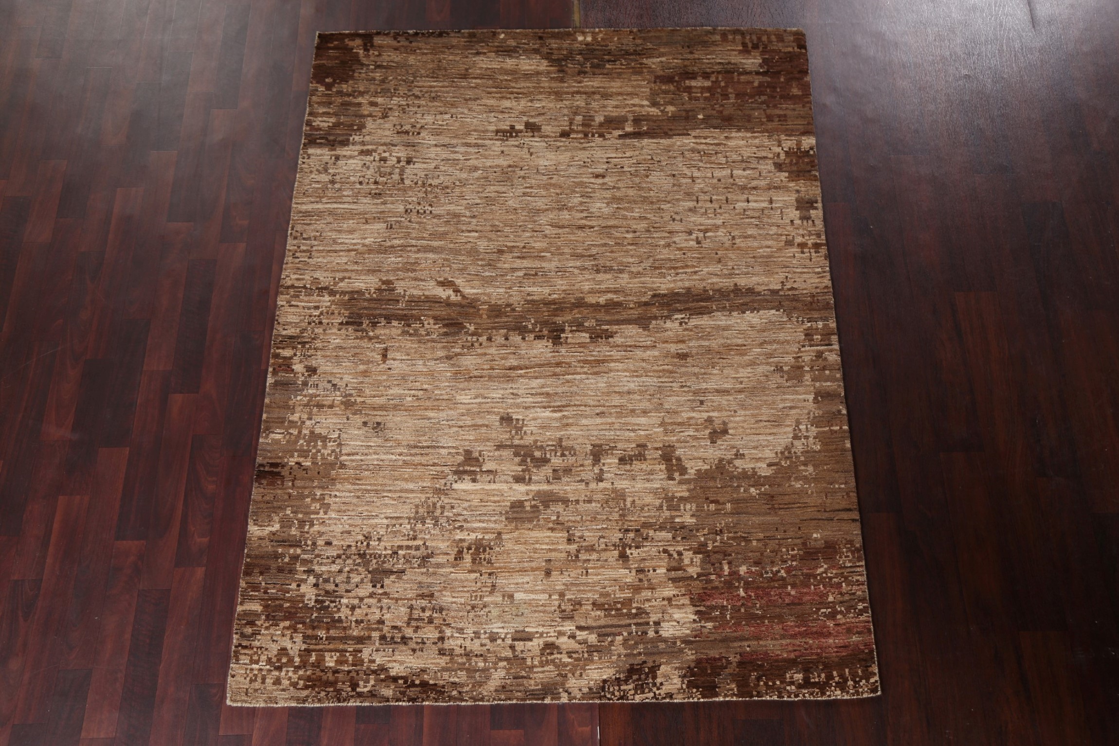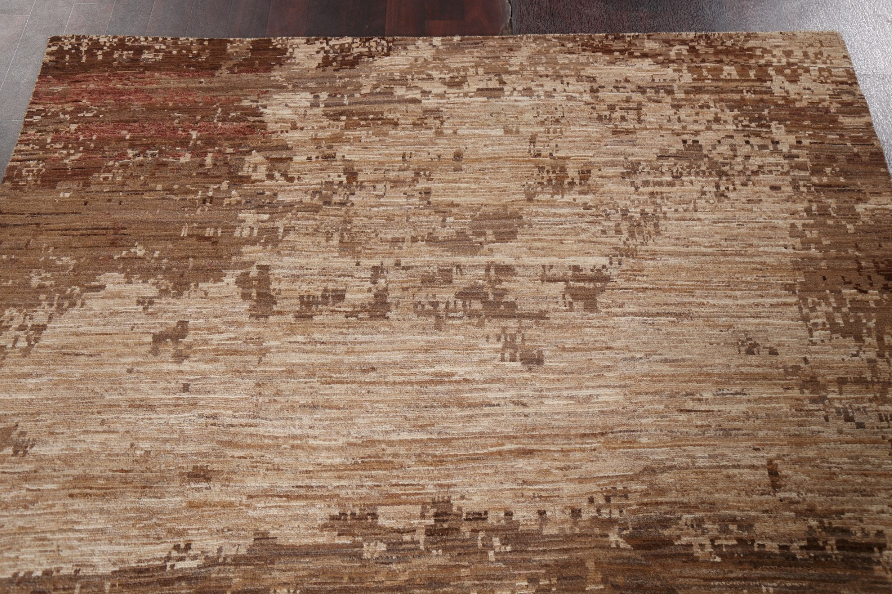 Earth-Tone Abstract Area Rug 5x7 Ft Vegetable Dye Wool Carpet Brown Modern Rug