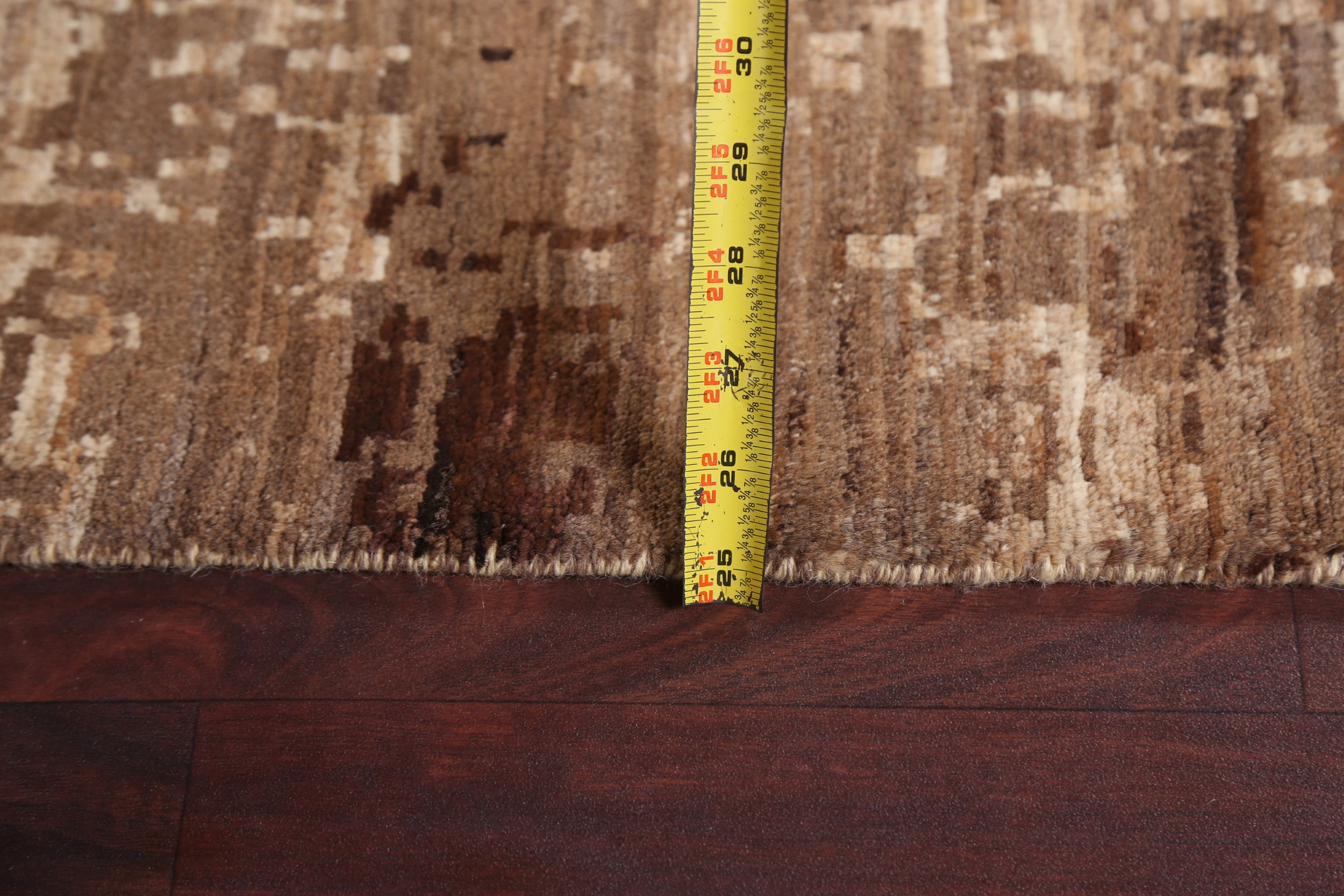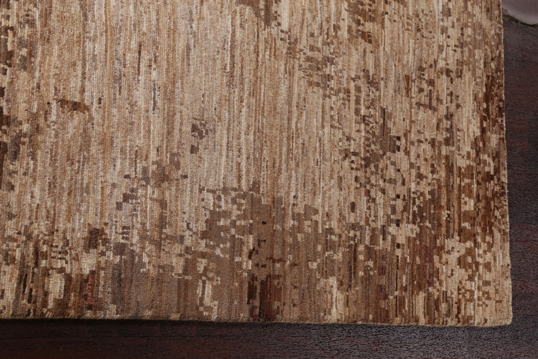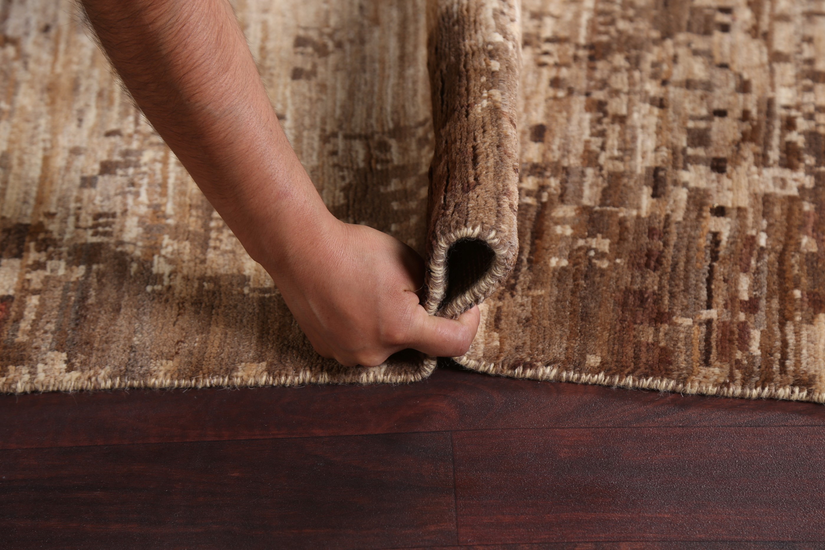Earth-Tone Abstract Area Rug 5x7 Ft Vegetable Dye Wool Carpet Brown Modern Rug