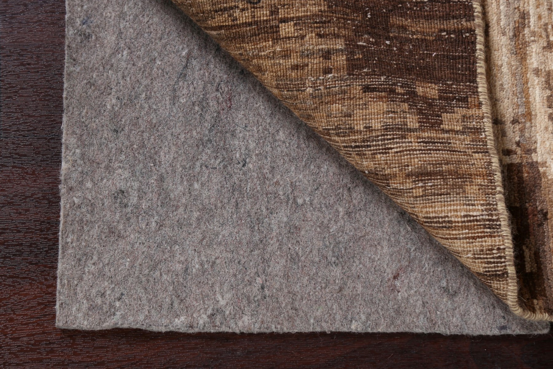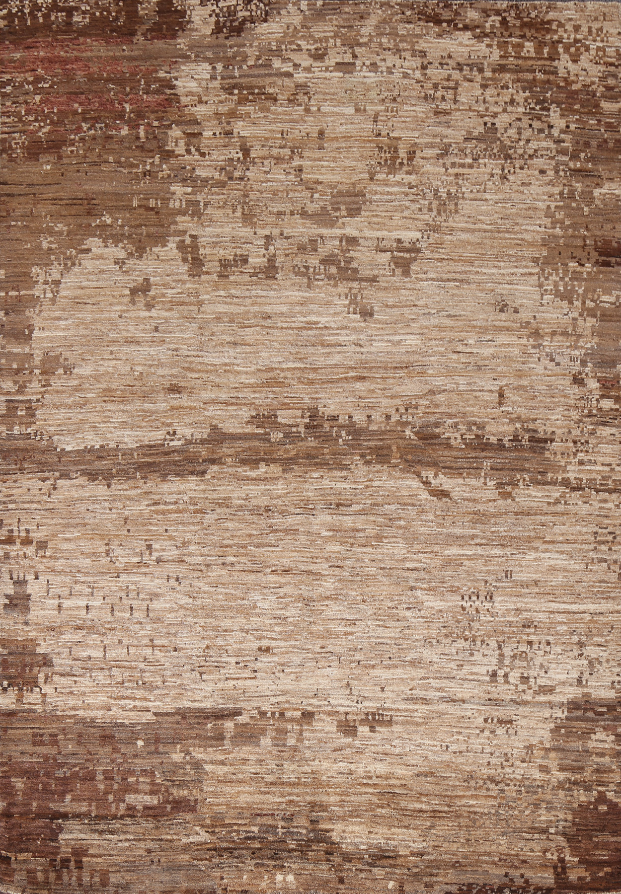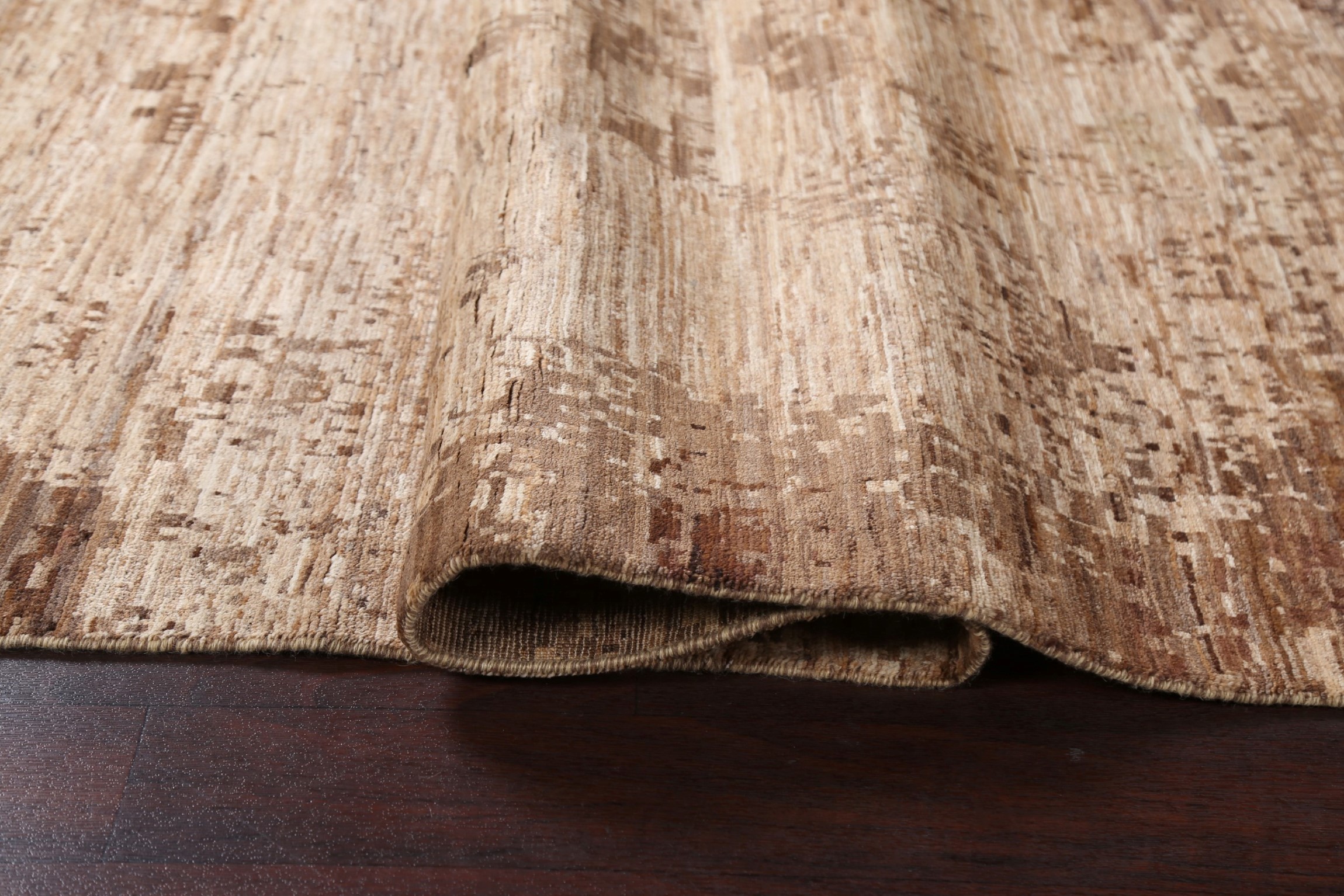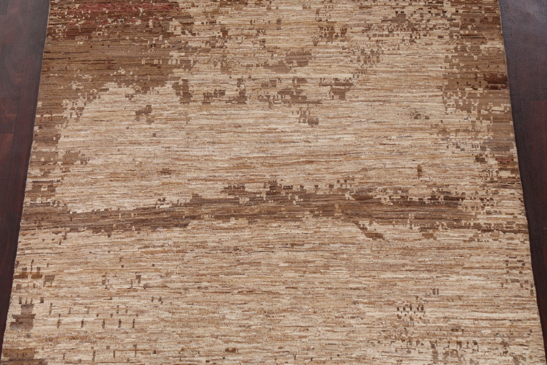Earth-Tone Abstract Area Rug 5x7 Ft Vegetable Dye Wool Carpet Brown Modern Rug