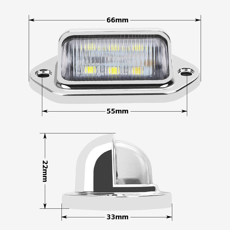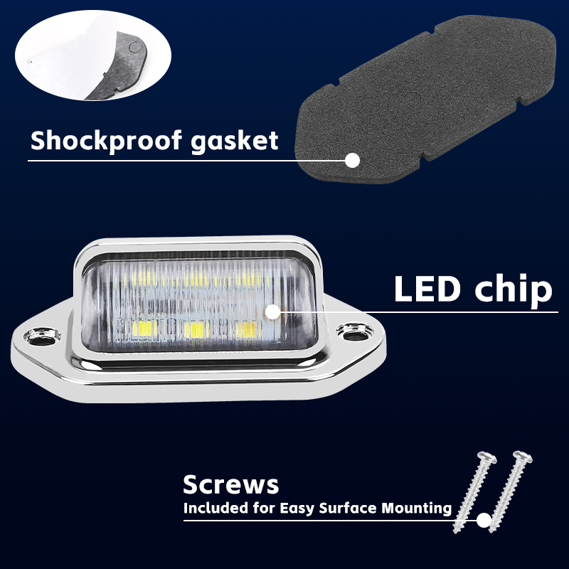 Super bright LED License Plate Light, provide maximum visibility and safety. Can be used as license plate light, tag light, step light, side marker, door light. Fits for motorcycles, boats cars, trucks, trailers, van, semi truck, RV's, suv, lorry, bus, etc.