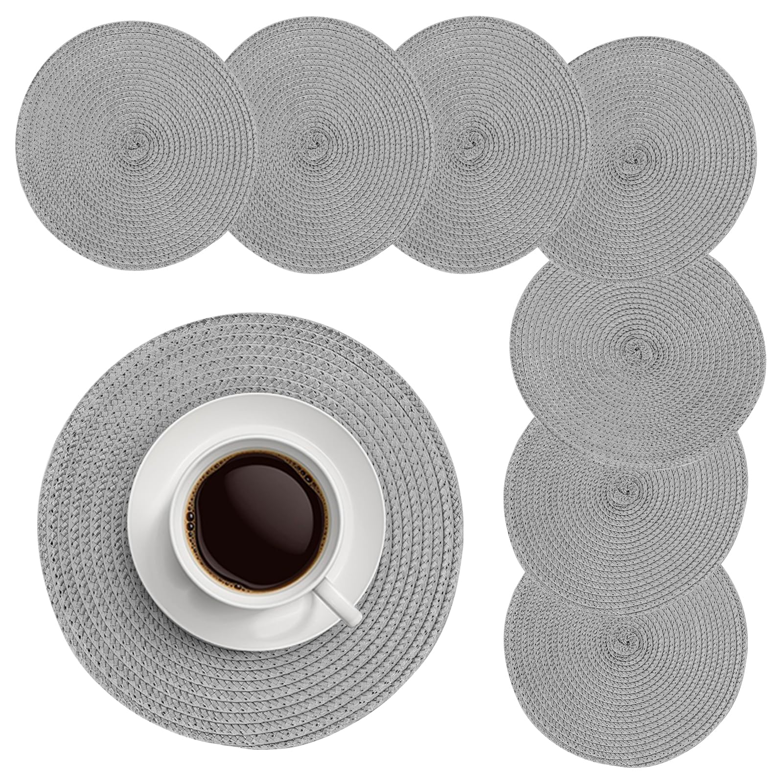 Round Braided Placemats Set of 8 Washable Round Table Placemats 15 x 15 Inch Heat-Resistant Table Mats for Dining, Banquet, Wedding, Party Table Decoration (Silver)