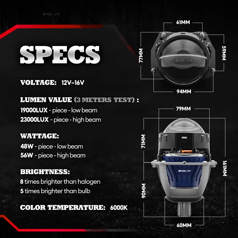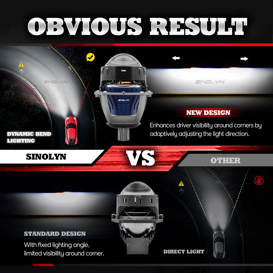 1.Ultra bright integrated Sinolyn LED headlights use high quality and efficient LED light sources, which are 8 times brighter than ordinary halogen lamps.
