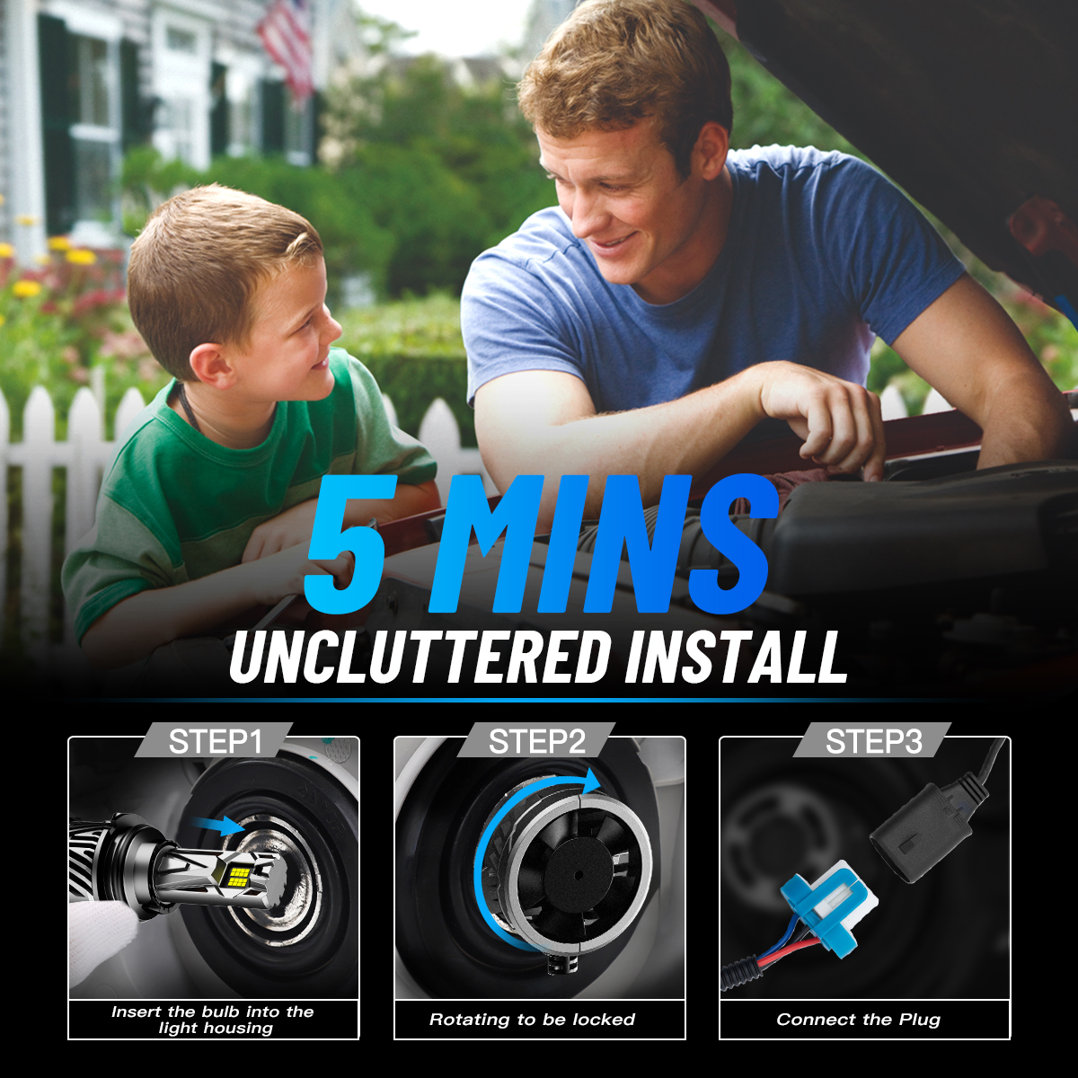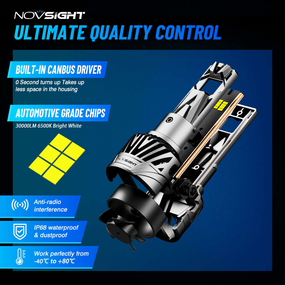 【5-MINUTE INSTALLATION】All-in-one design, bulid-in driver for taking up less space in housing, no bulky external driver, no extended bulb base, no more modification on housing or cover. Real plug and play, smoothly fits into vehicle's housing and factory sockets even with limited space in original housing.