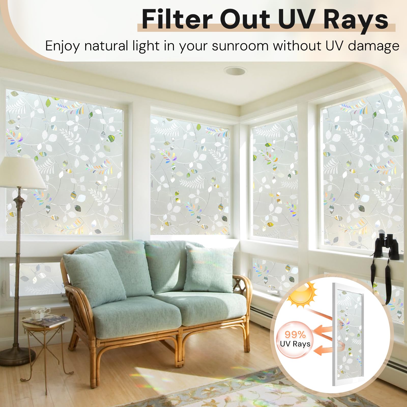 3.The decorative window film itself does not actually have any color. However, with special 3D laser design it will show a colorful visual effect when sunlight hits the privacy film after installation;