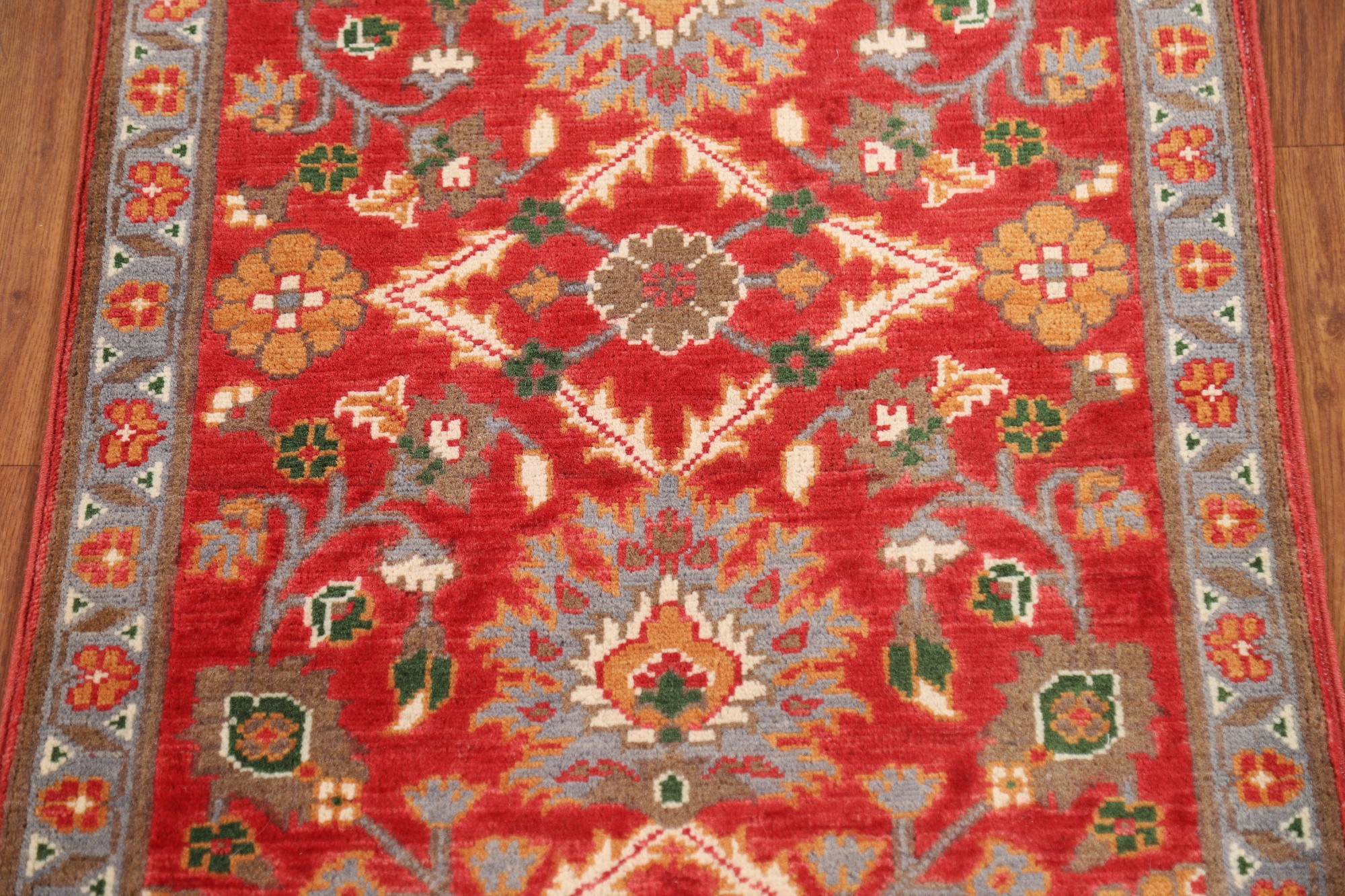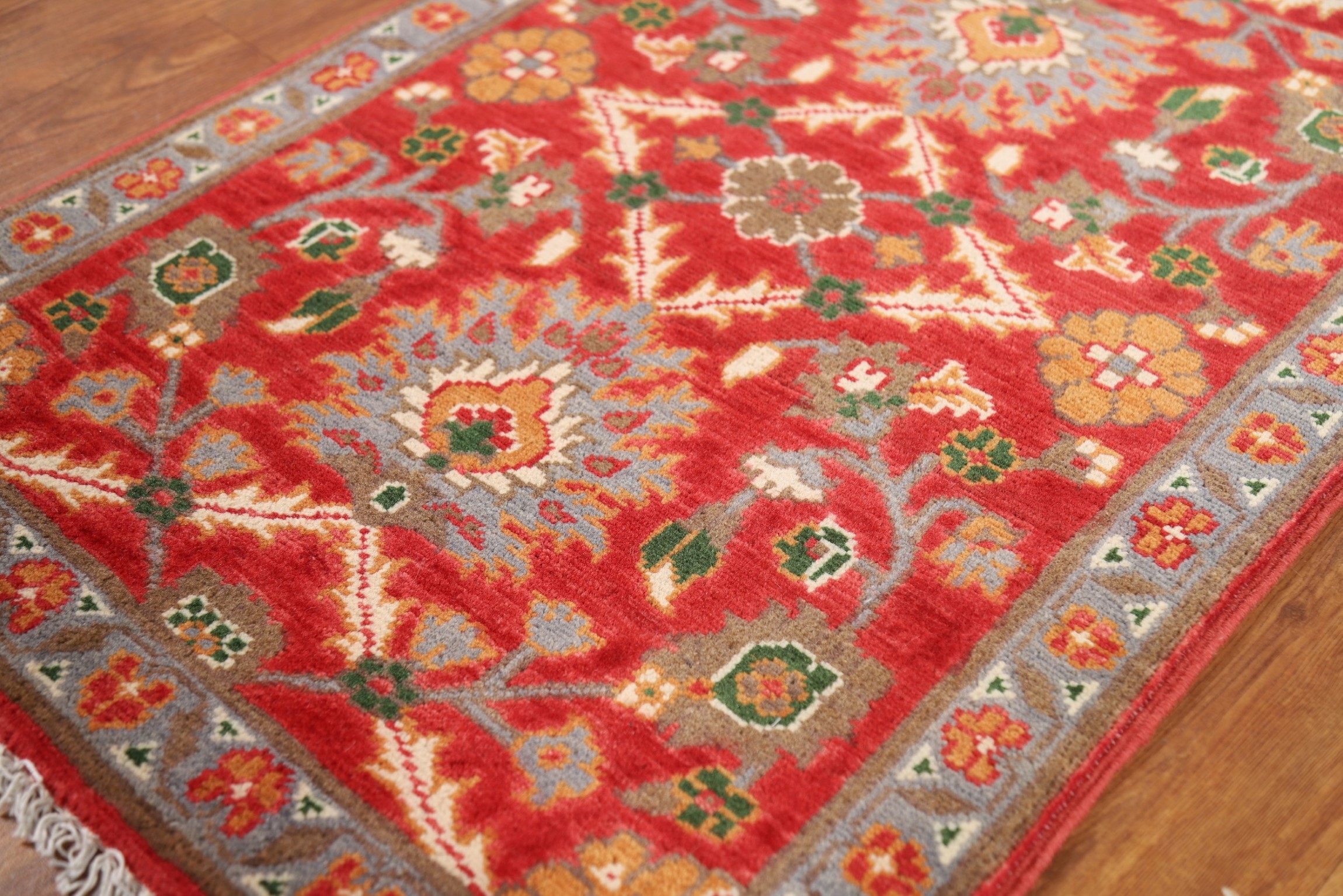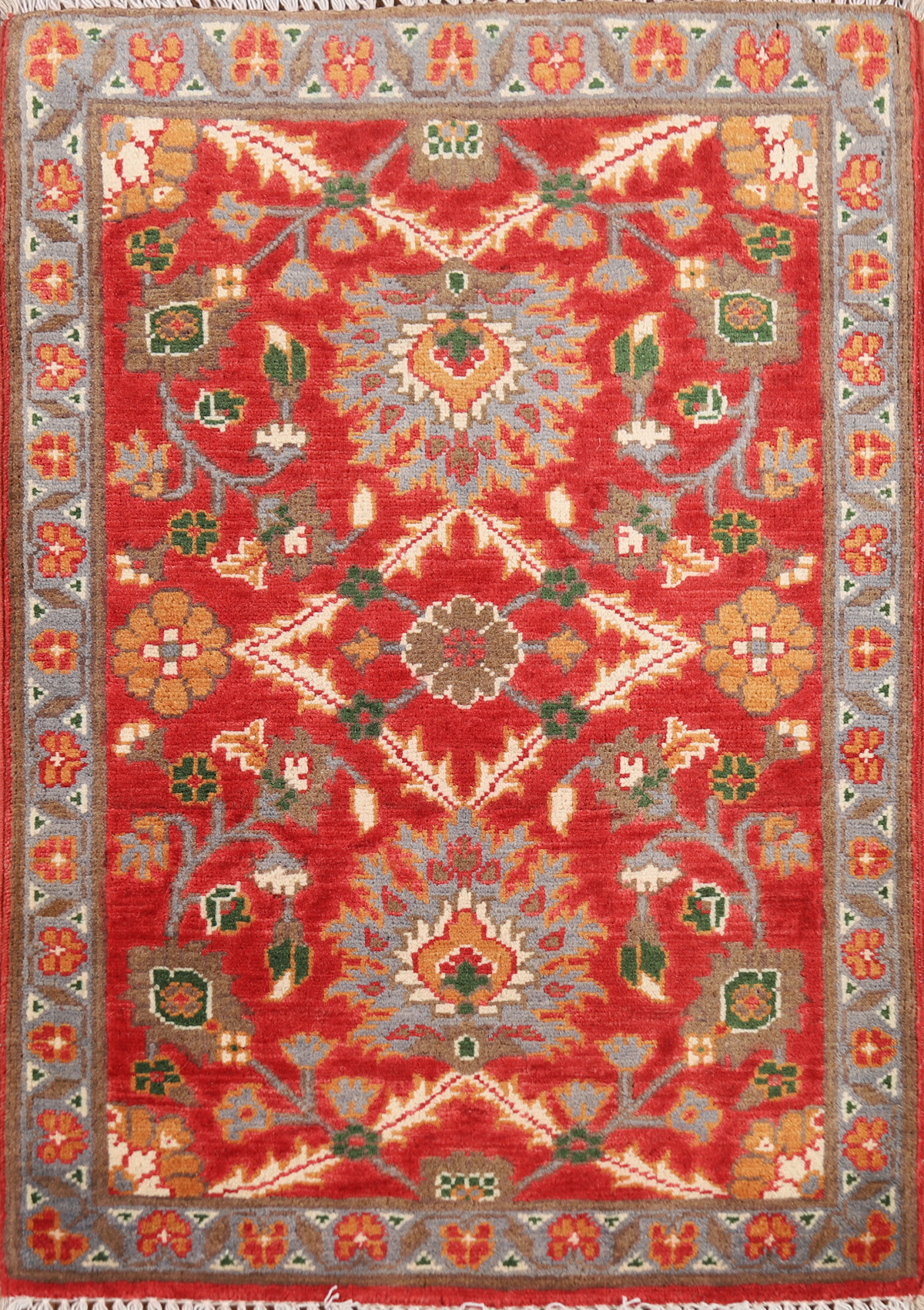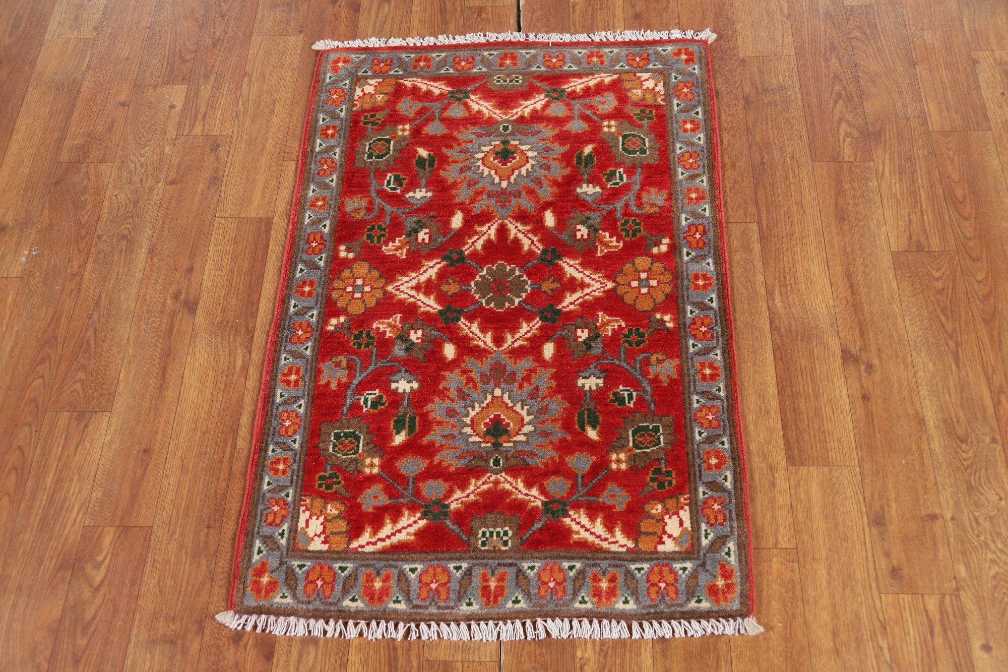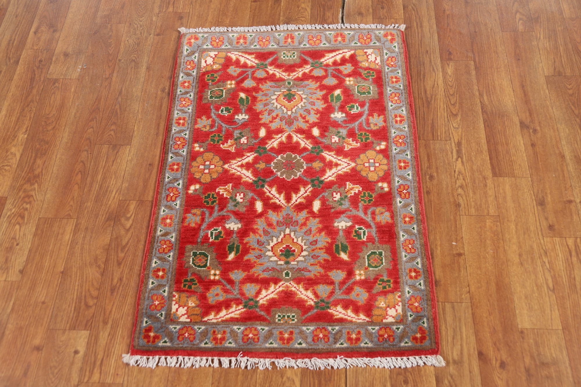 Red Floral Kazak Rug 2x3 Ft Hand-Knotted Traditional Wool Carpet Foyer Rug