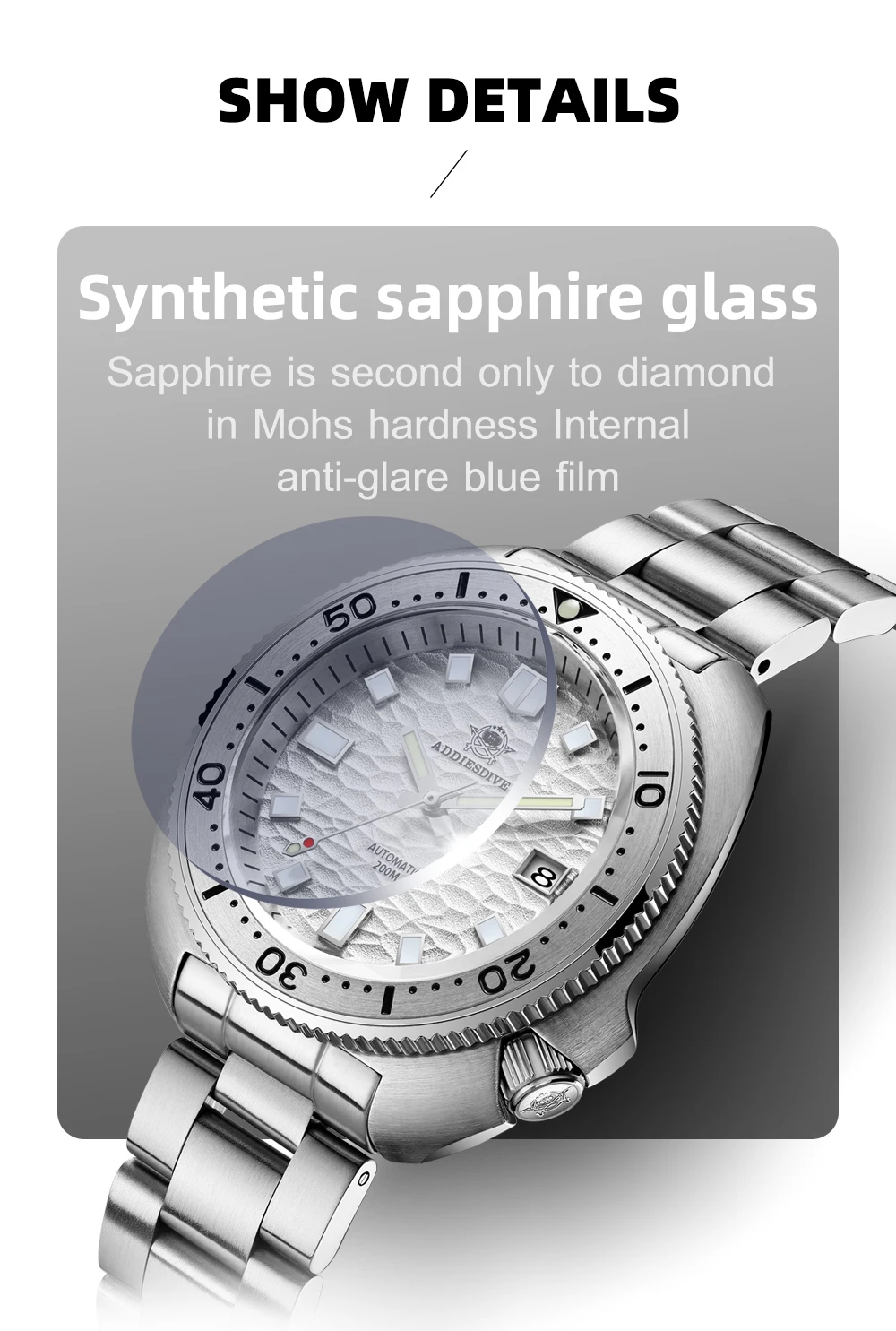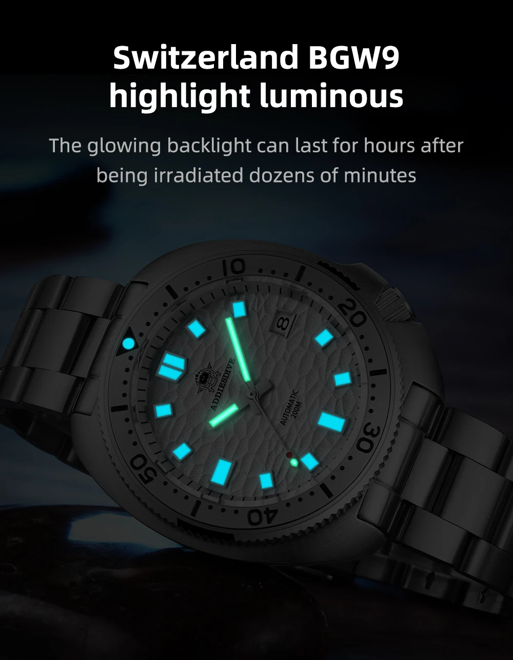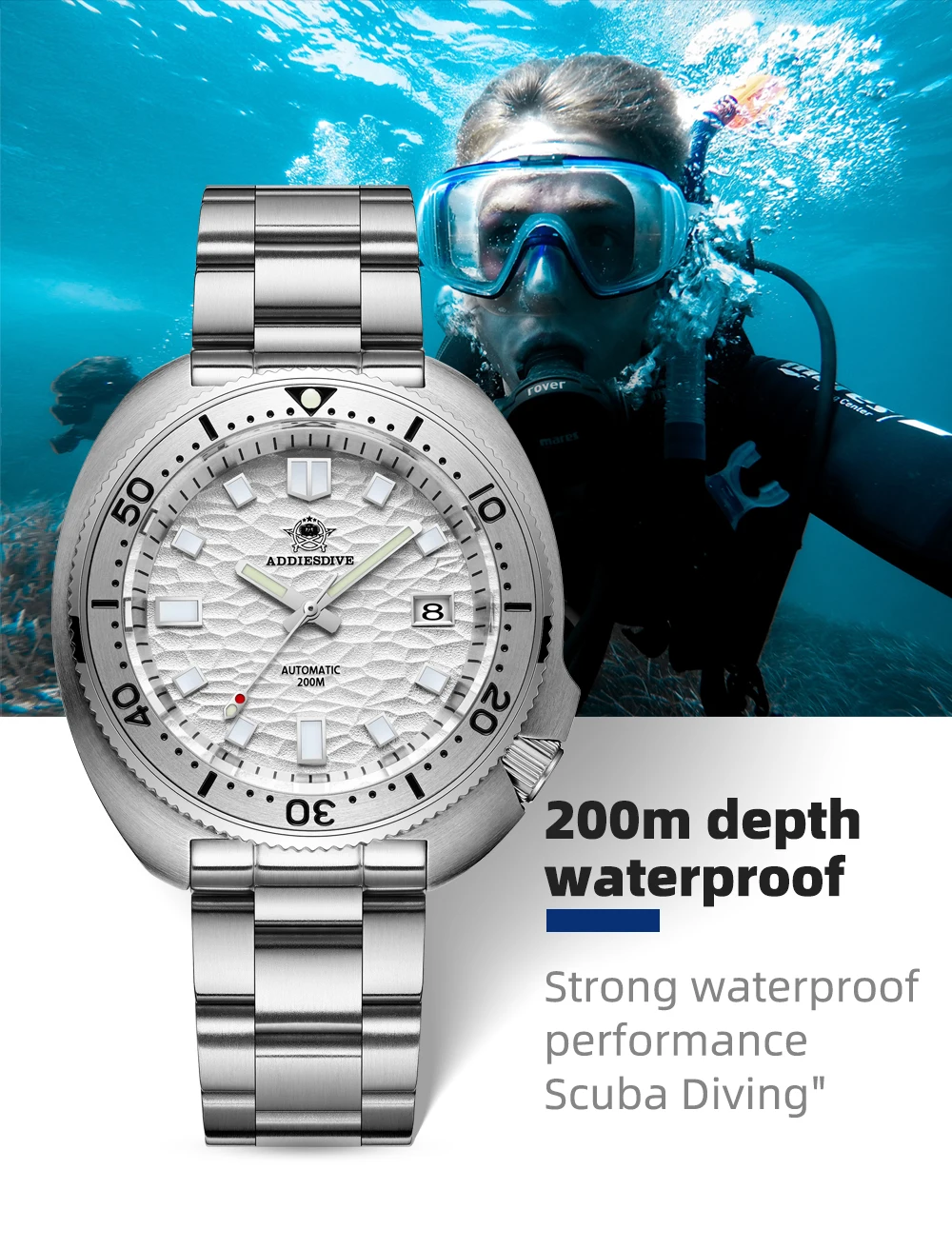 • Automatic Self-Wind Movement :The ADDIESDIVE men's mechanical watch features an automatic self-wind movement, ensuring precise timekeeping and efficient energy usage.