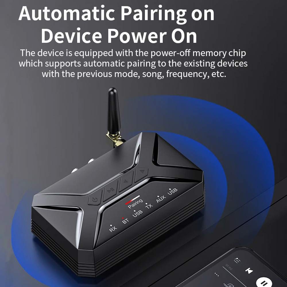 - Bluetooth Transmitter mode: wirelessly streams audio from your non-Bluetooth