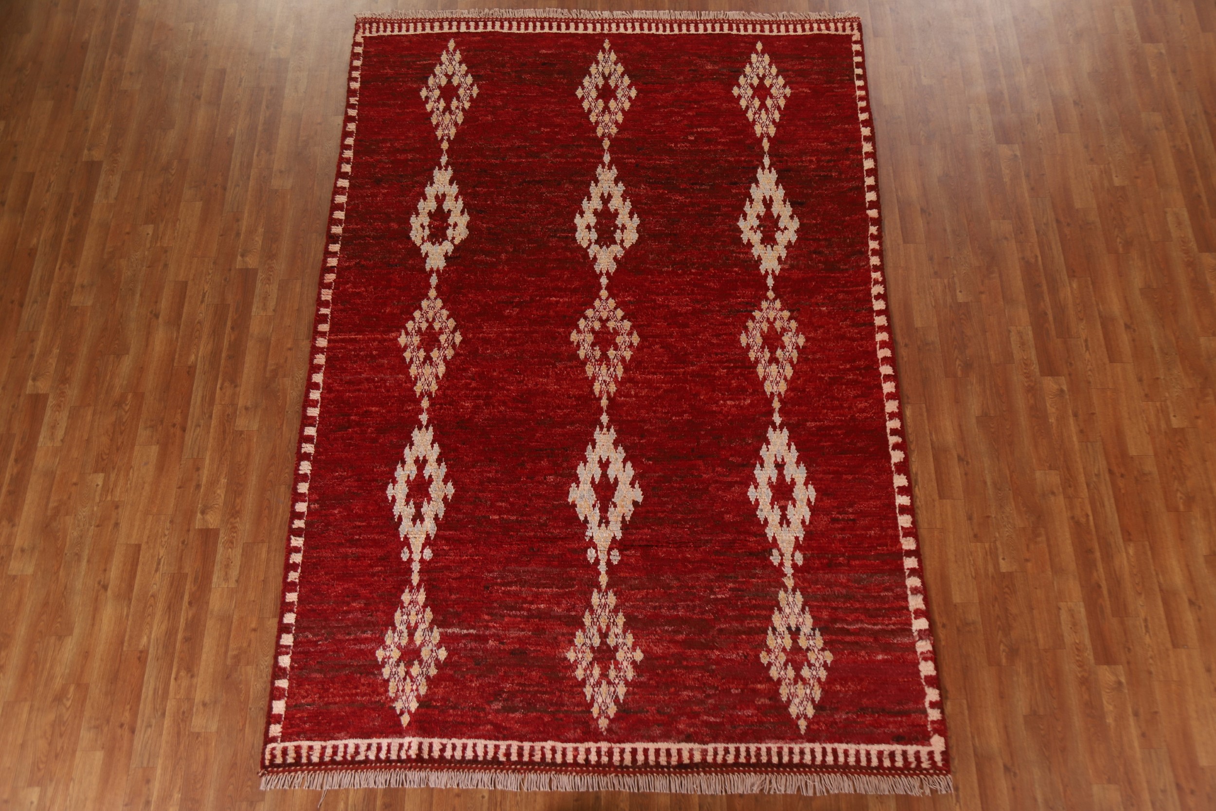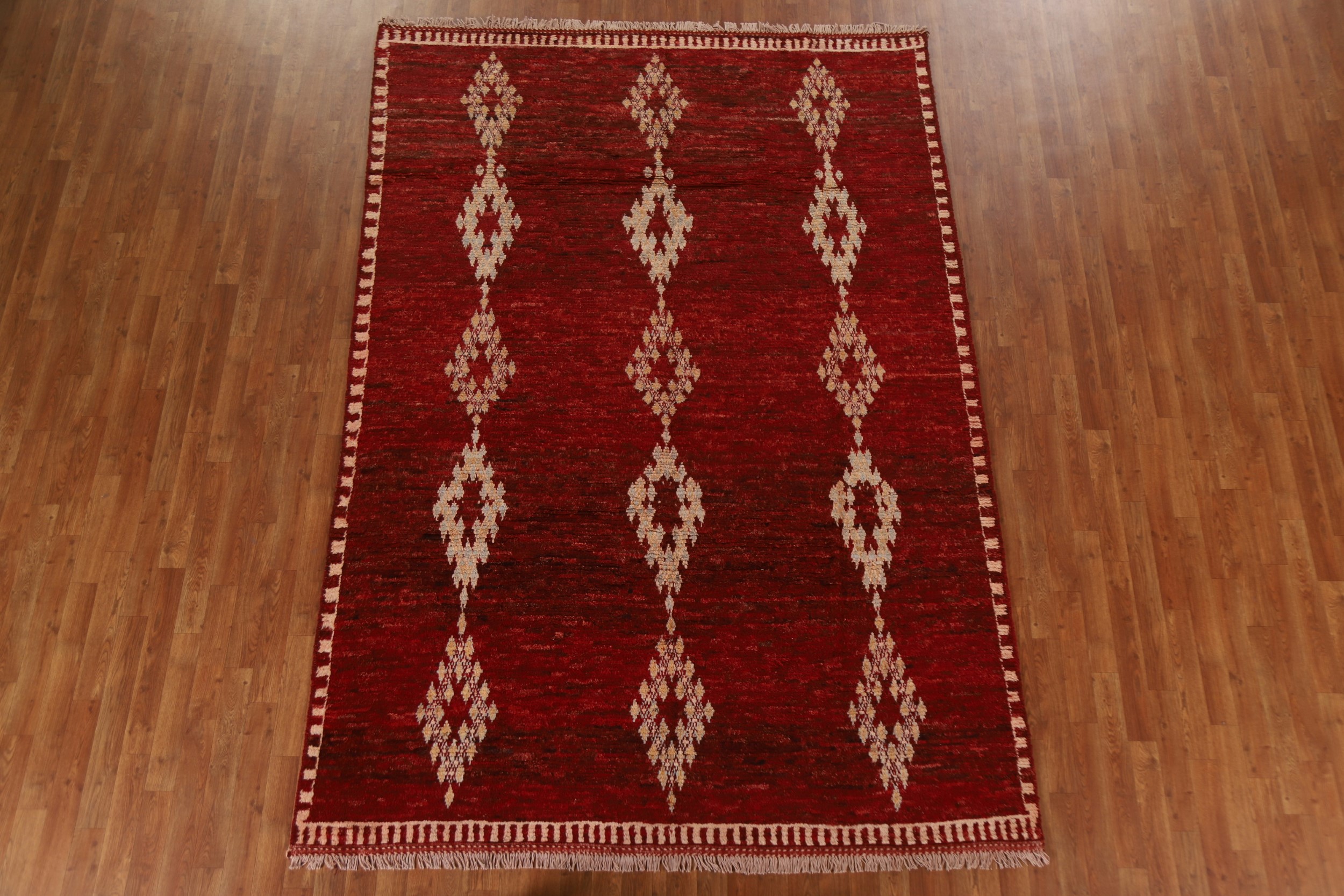 Handmade Tribal Wool Carpet Red Geometric Area Rug 7x10 Ft Oriental Moroccan Rug