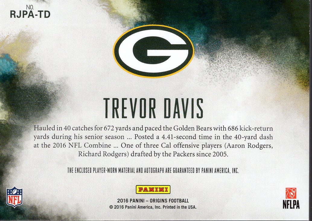 2016 Panini Origins Rookie Jumbo Patch Autographs Trevor Davis Auto Jersey