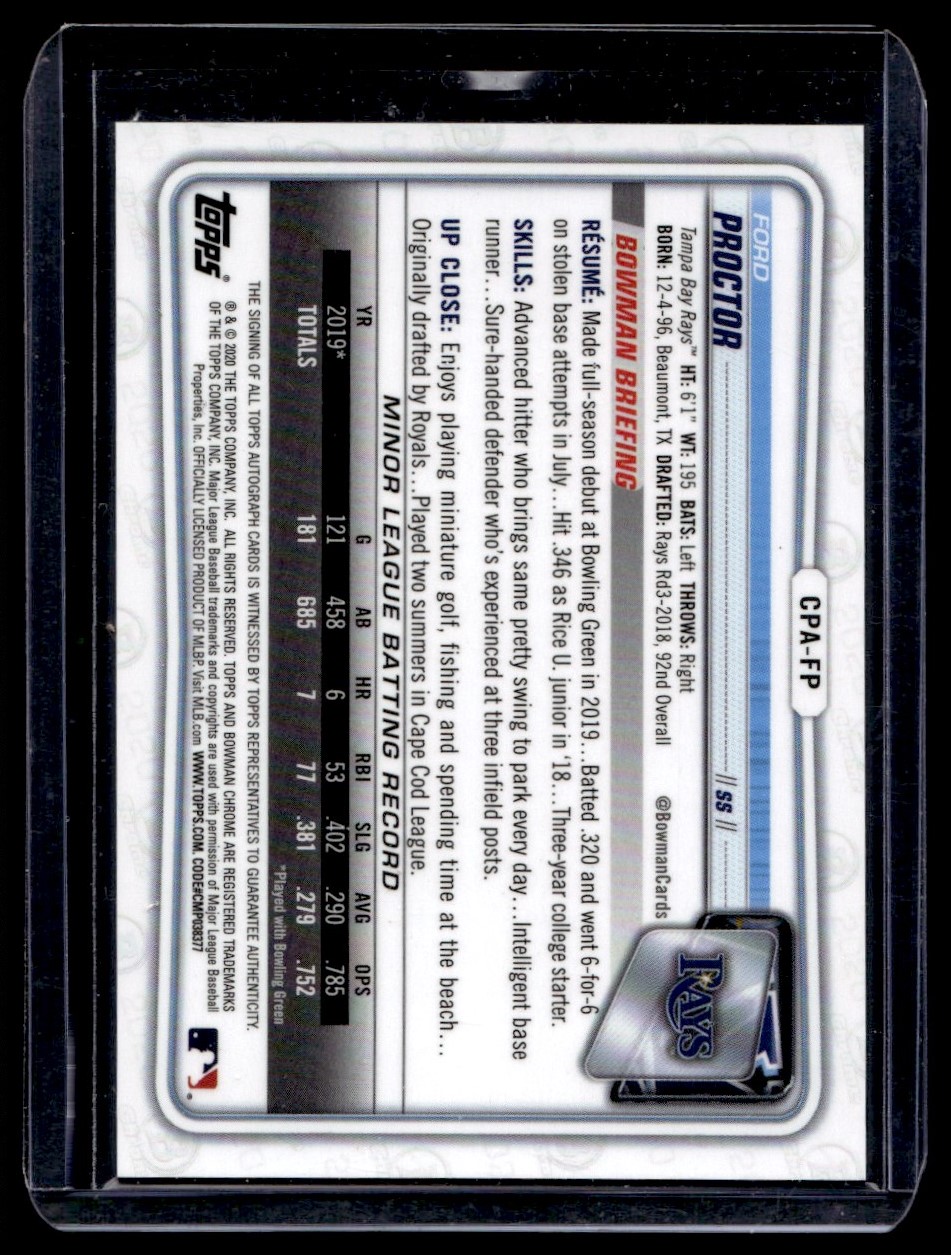 | 2020 Bowman Chrome Autograph Speckle Refractor Ford Proctor RC Auto /299 Tampa |