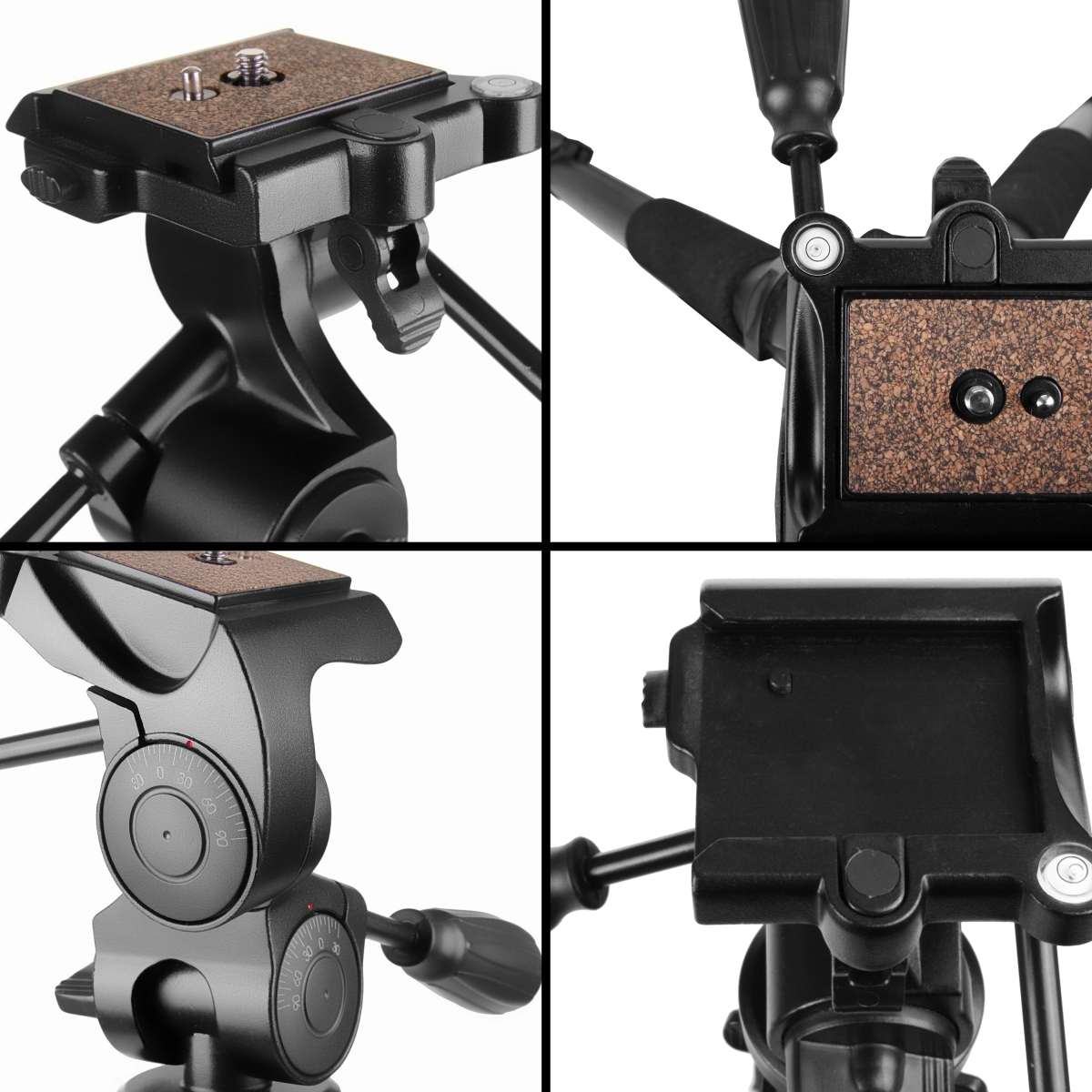 - Ampia piastra a sgancio rapido rivestita in sughero con attacco per telecamera da 1/4 di pollice