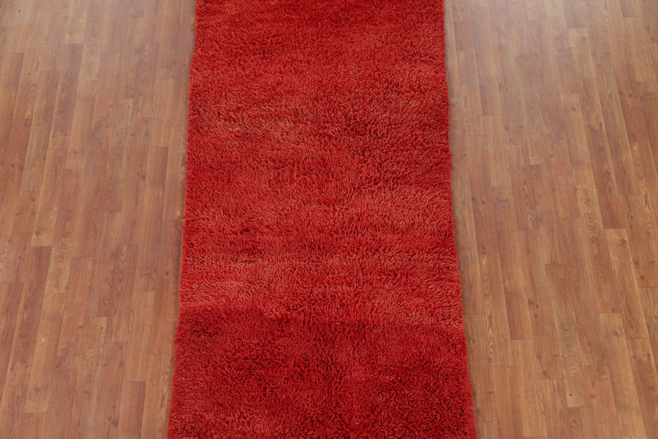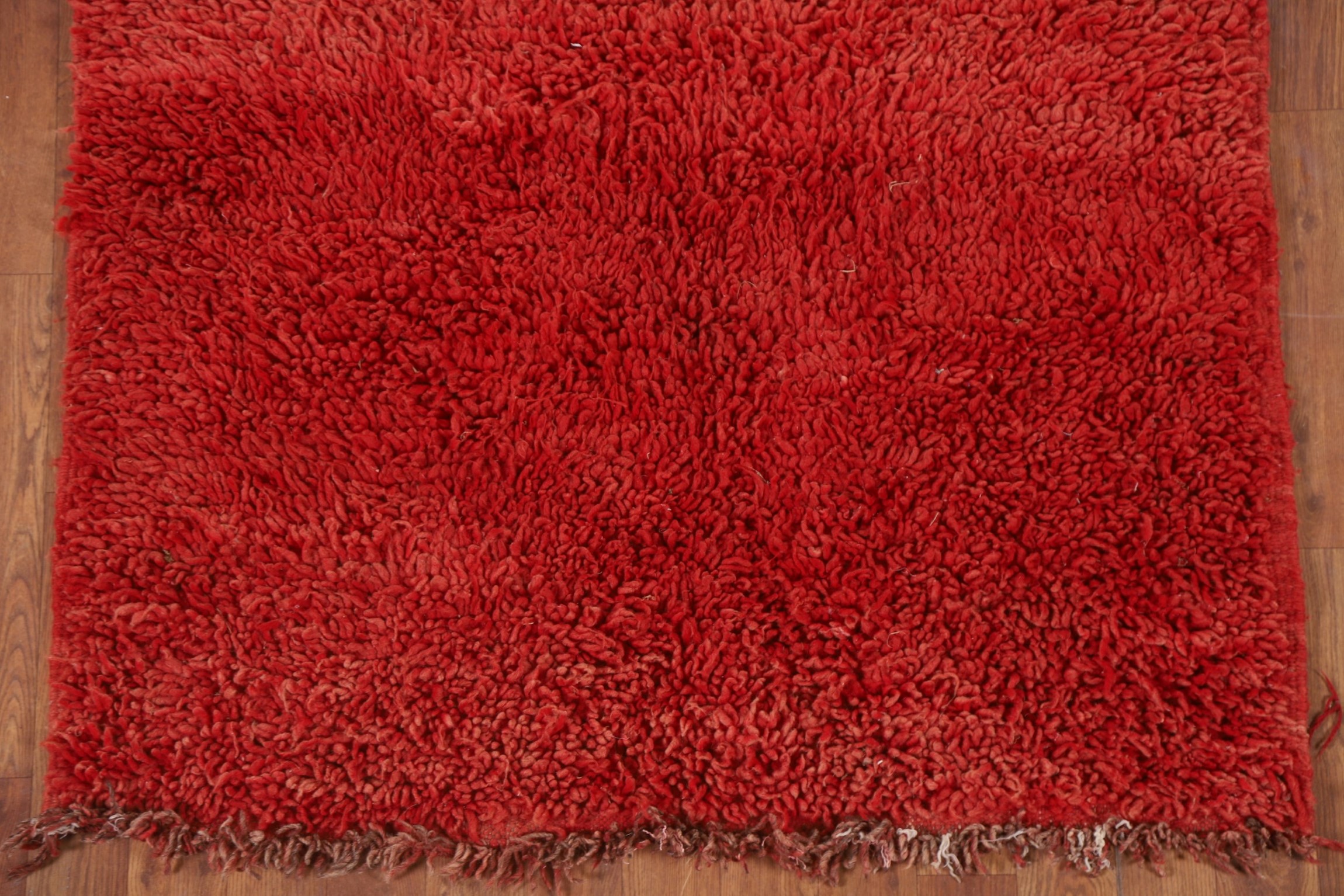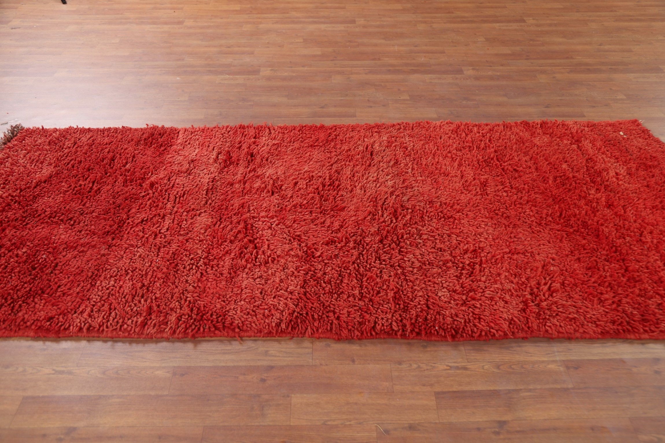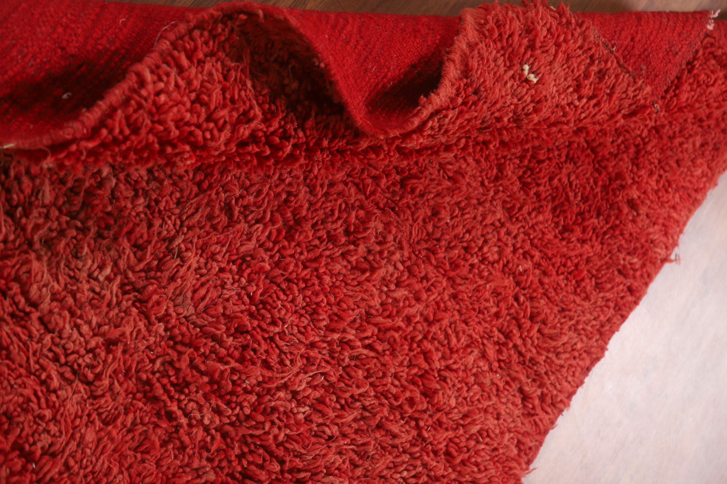 Handmade Red Plush Moroccan Runner Rug 4x9 Ft Shaggy Wool Carpet Hallway Rug