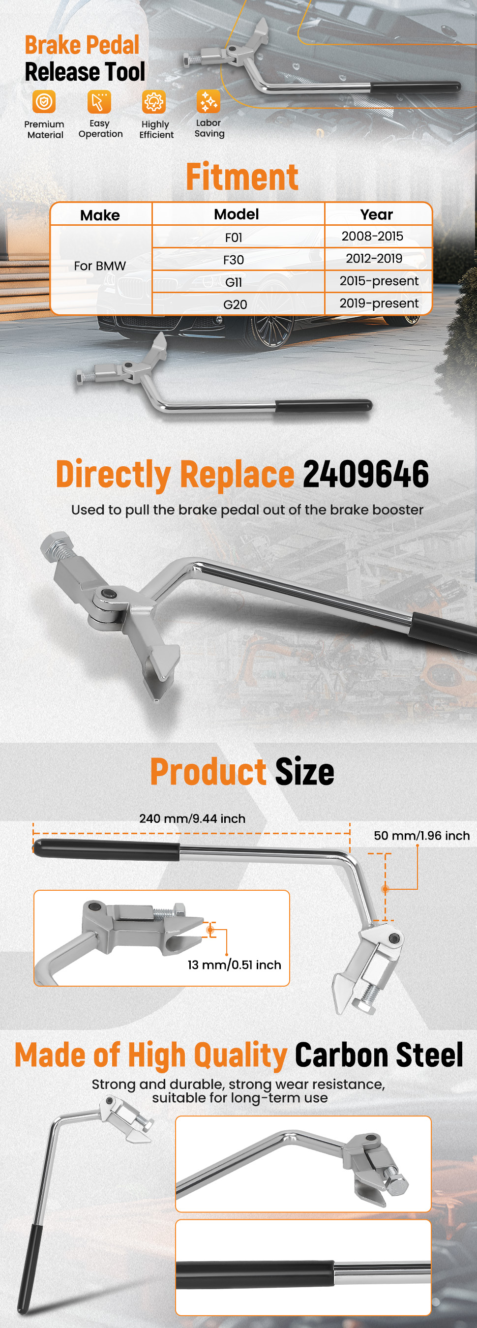 1. Specially designed to lever the brake pedal out of the brake booster.