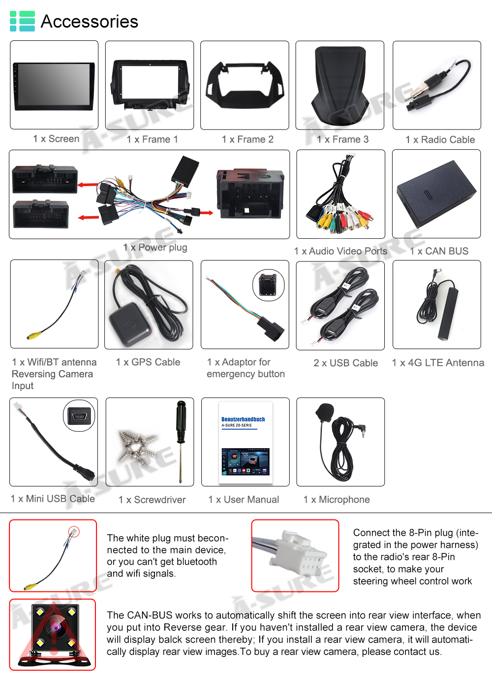- Work with Original Steering Wheel Controls: Steering wheel controls allow the driver to easily operate the vehicle's multimedia system, telephone, navigation, and other functions via buttons on the steering wheel or the touch screen while driving without having to distract their attention from touching other locations.