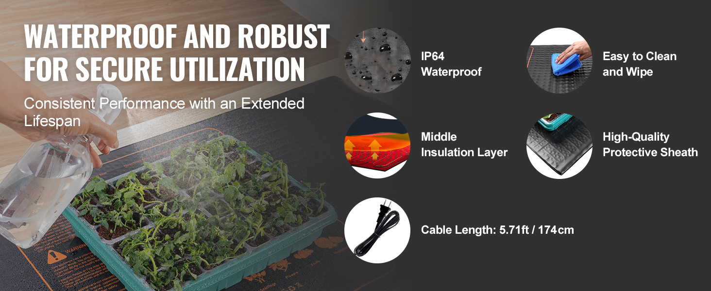 Our exceptional seedling heating pad provides consistent, even heat (32-104°F or 0-40°C) ideal for seed propagation, making it perfect for family gardening.