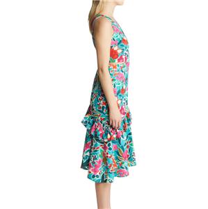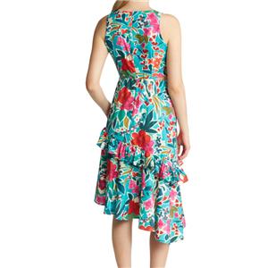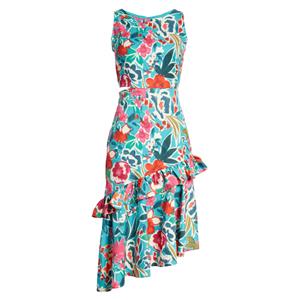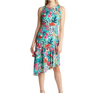 A blossom-tossed dress makes a party-ready statement with a flirty waist cutout and tiered asymmetric skirt. Jewel neck. Sleeveless. Partially lined. Made of polyester.