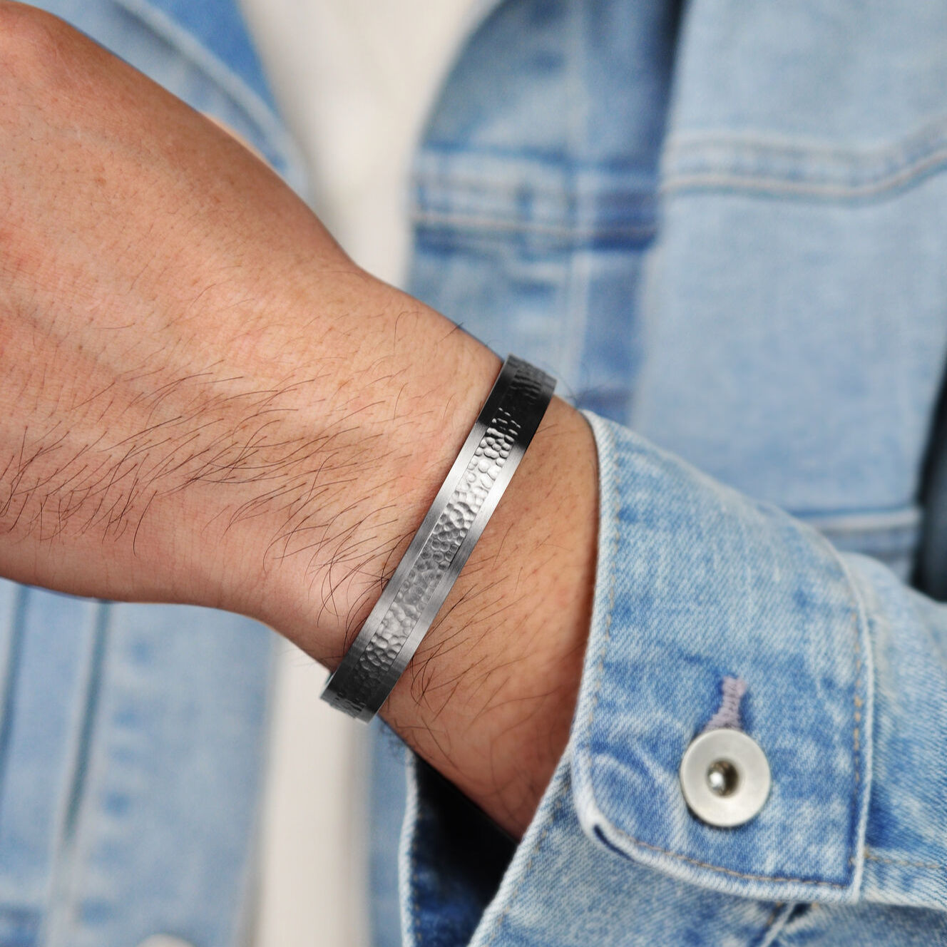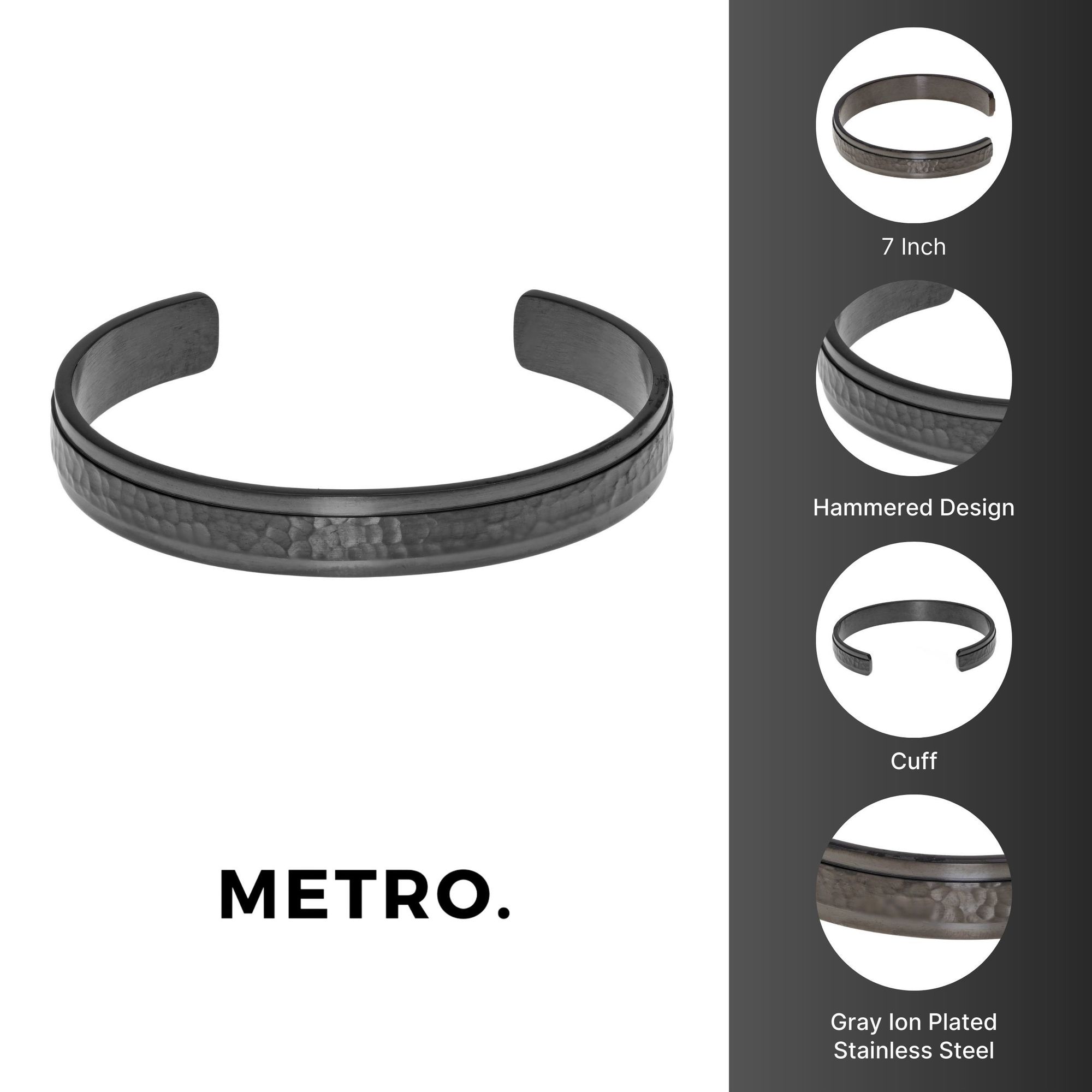 Elevate your style with our Men's Gray Ion Plated Stainless Steel Hammered Cuff Bangle Bracelet - 8.5 Inch. Embrace the modern, masculine design and show off your unique personality with this must-have accessory. Perfect for gifting or treating yourself, this cuff bracelet is a timeless addition to any jewelry collection. Don't miss out on this stylish piece - add it to your cart today!