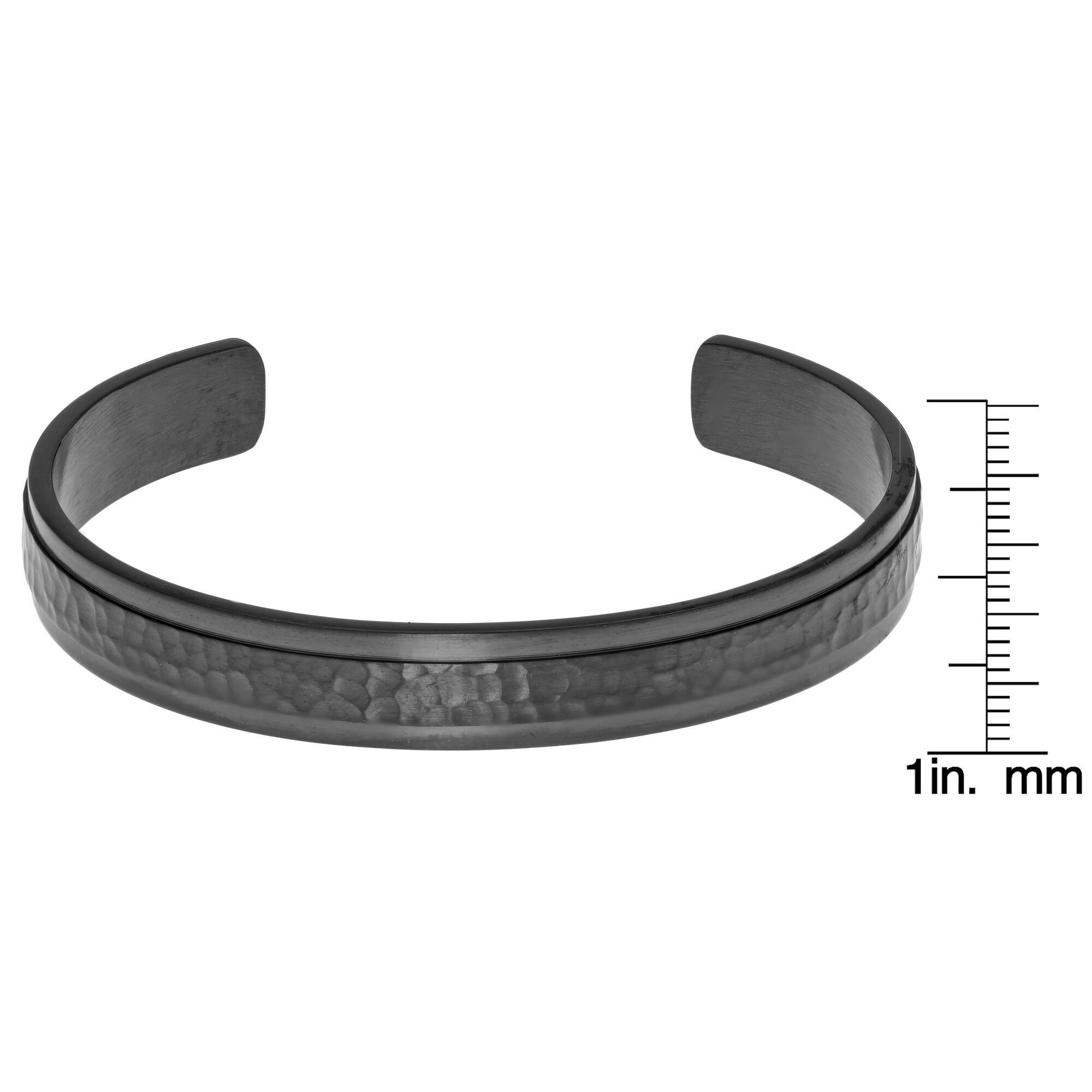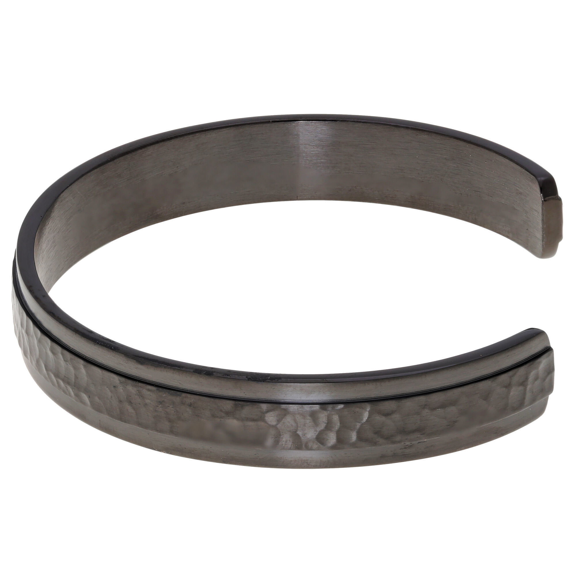 Step up your style game with our Men's Gray Ion Plated Stainless Steel Hammered Cuff Bangle Bracelet - 8.5 Inch. This sleek and modern cuff is designed for the bold and the fashion-forward gentleman who isn't afraid to make a statement. The hammered texture adds a touch of rugged charm to this sophisticated piece, making it the perfect accessory for any occasion.