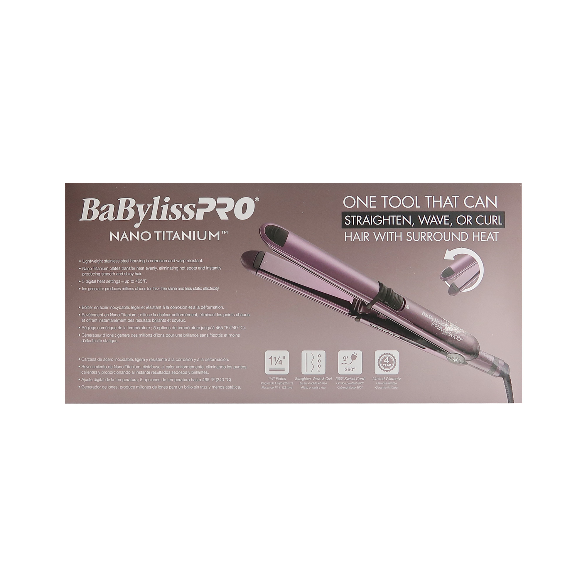 Curl & straighten hair with the mini version of our dual use BaByliss Pro Nano Titanium Prima 2000 featuring IonMultiplier Technology & titanium plates for efficient heat transfer that instantly smoothes, conditions & shines. Locking function