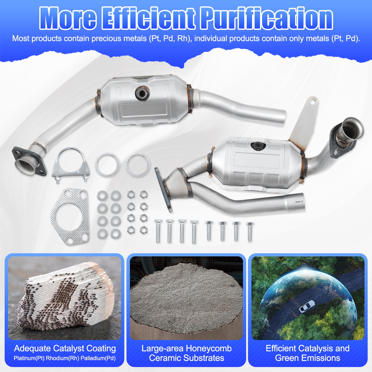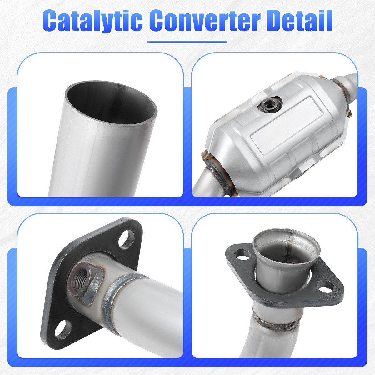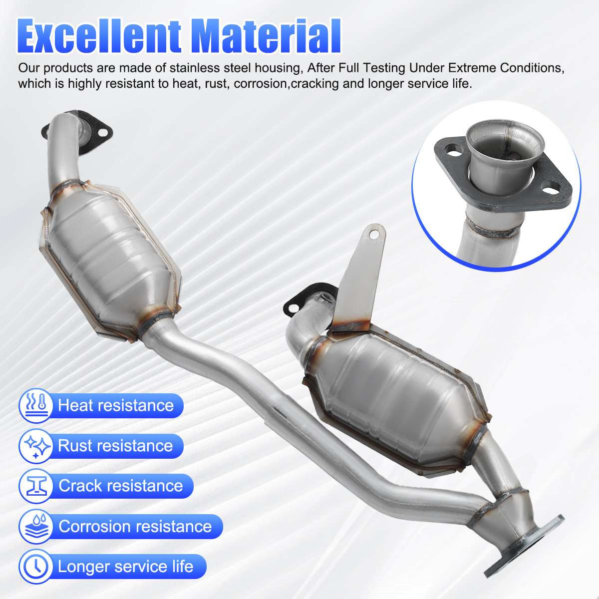 2.Our catalytic converters are direct replacements, Compliant with standard OE specifications, all mounting holes are securely and accurately fastened with the included gasket and hardware.
