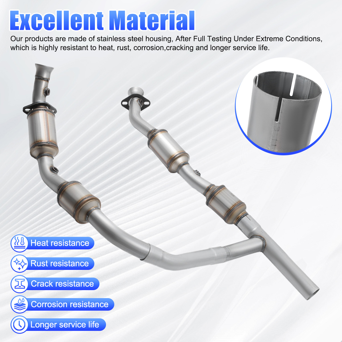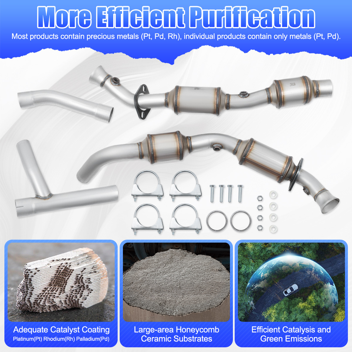 2.Our catalytic converters are direct replacements, Compliant with standard OE specifications, all mounting holes are securely and accurately fastened with the included gasket and hardware.