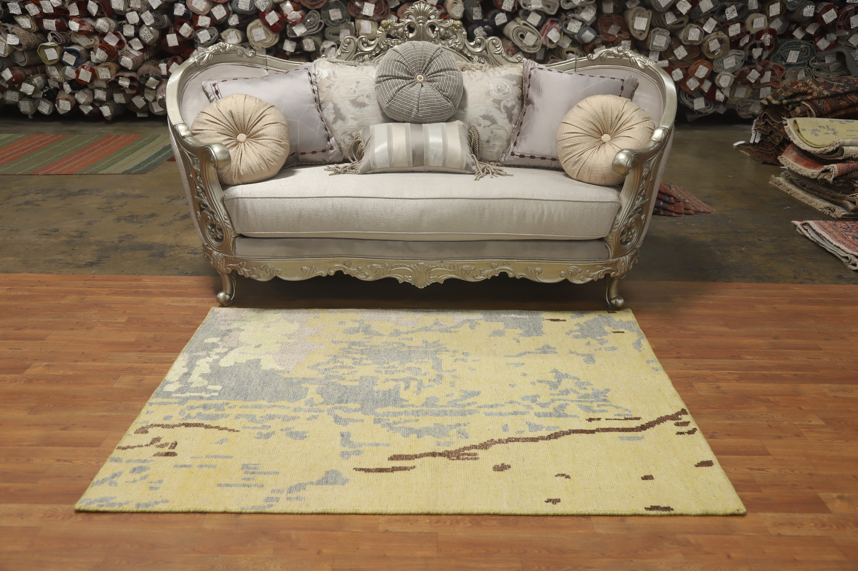 Handmade Modern Abstract Oriental Rug Gold Contemporary Carpet 4x6