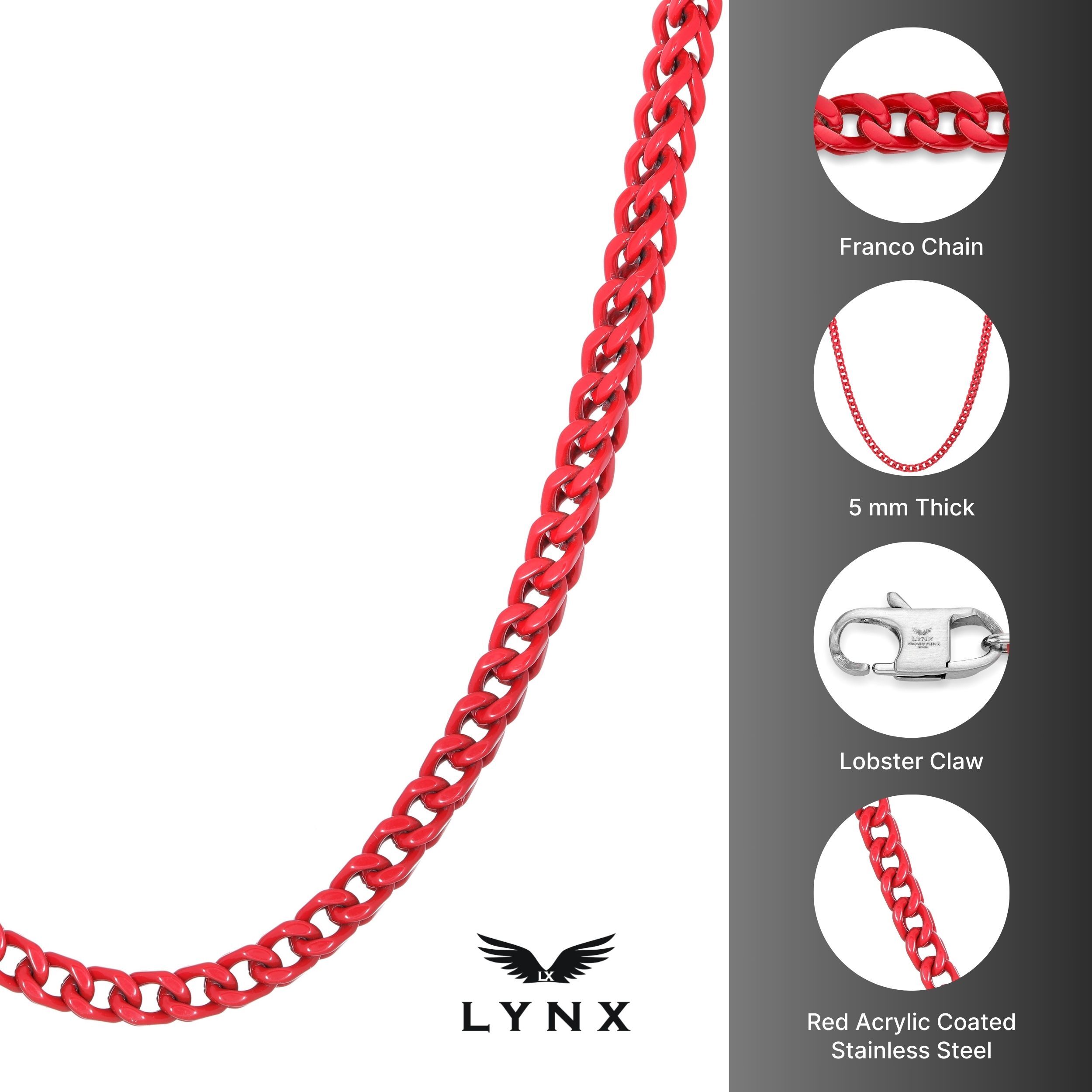 Introducing our Red Acrylic Coated Stainless Steel 5MM Rolo Chain Necklace - 22 Inch, the perfect blend of masculine style and contemporary flair. This bold and eye-catching chain is a must-have accessory for men who want to stand out from the crowd and make a statement. Whether you're dressing up for a special occasion or adding a touch of edgy elegance to your everyday look, this necklace is sure to turn heads and make you the center of attention. This stunning chain features a classic Rolo design that is both sturdy and stylish. Made from high-quality stainless steel, it is built to withstand the rigors of everyday wear and maintain its lustrous appearance. The vibrant red acrylic coating adds a modern twist to this timeless piece, making it the perfect choice for trendsetting men who appreciate classic design with a contemporary twist. Upgrade your jewelry collection with our Red Acrylic Coated Stainless Steel 5MM Rolo Chain Necklace - 22 Inch and elevate your style to new heights. Whether you're treating yourself or looking for the perfect gift for someone special, this necklace is sure to impress. Don't miss out on this opportunity to own a truly remarkable piece of jewelry that combines durability, style, and versatility in one. Order now and let your unique personality shine through! Make a statement with our Red Acrylic Coated Stainless Steel 5MM Rolo Chain Necklace - 22 Inch today!